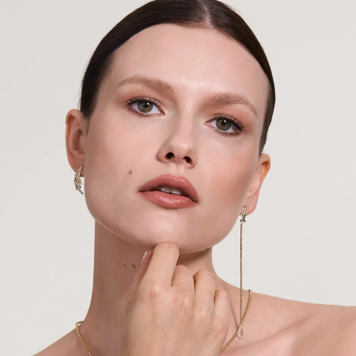 Nieregularność inspiruje nas od wielu lat. W niemal każdej kolekcji ORSKA odnaleźć można arytmiczne wzory, które spaja charakterystyczna dla marki estetyka. W kolekcji Bery znajdziemy zestaw kolczyków złożony z liściastej nausznicy ozdobionej zawieszką w kształcie ptaka oraz krótszego kolczyka wykończonego kryształem. Dysproporcja rozmiarów to główna idea kompozycyjna znaczącej części biżuterii zdobiącej uszy, którą tworzymy. Większy element harmonijnie współgrający z mniejszym znajdziemy także m.in. w zestawie kolczyków przypominających noski klonowe czy kwiaty.
