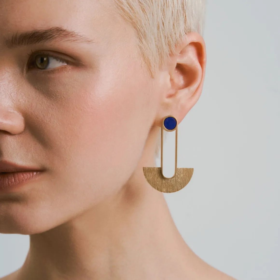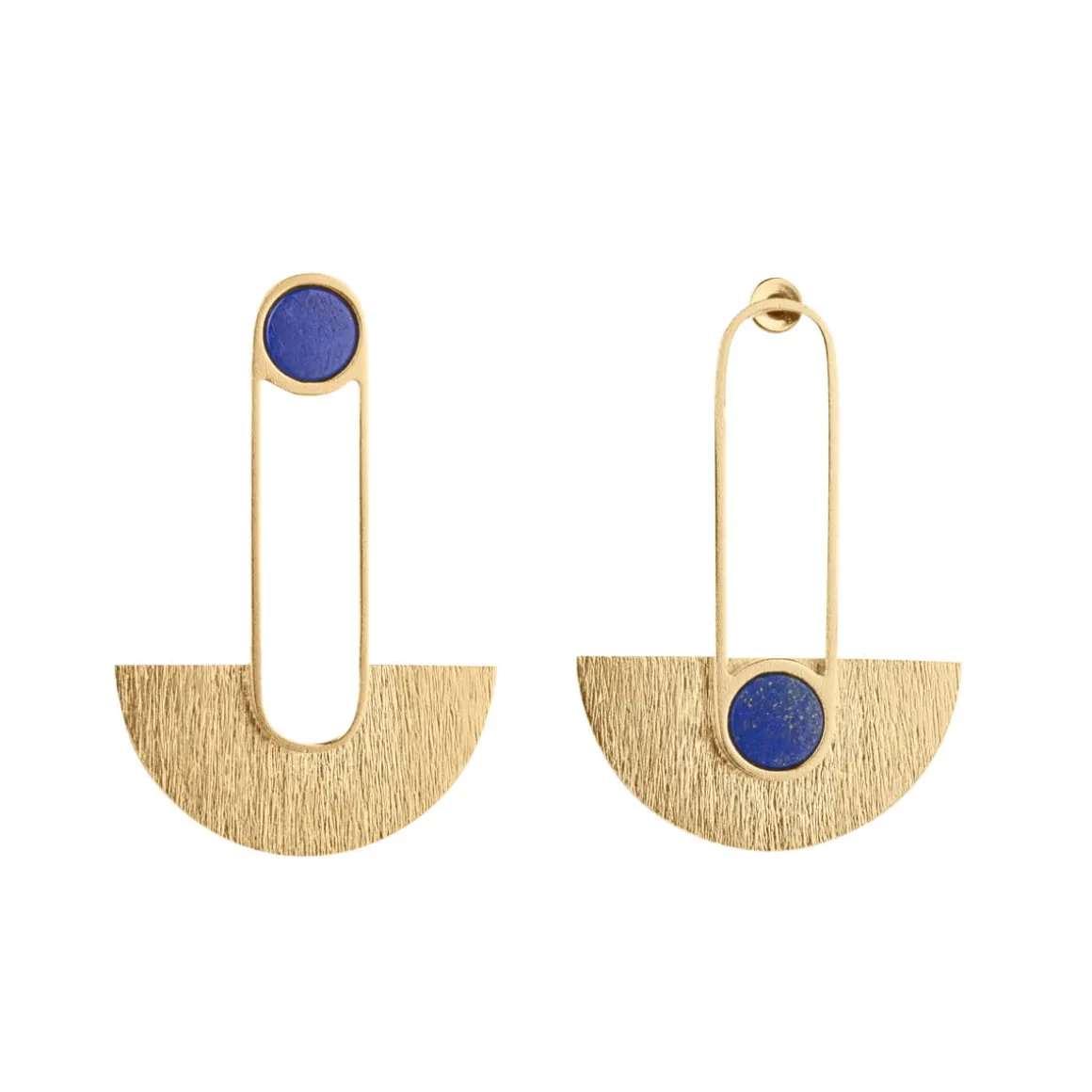 Asymetryczne, pozłacane kolczyki z lapis lazuli z kolekcji Orini