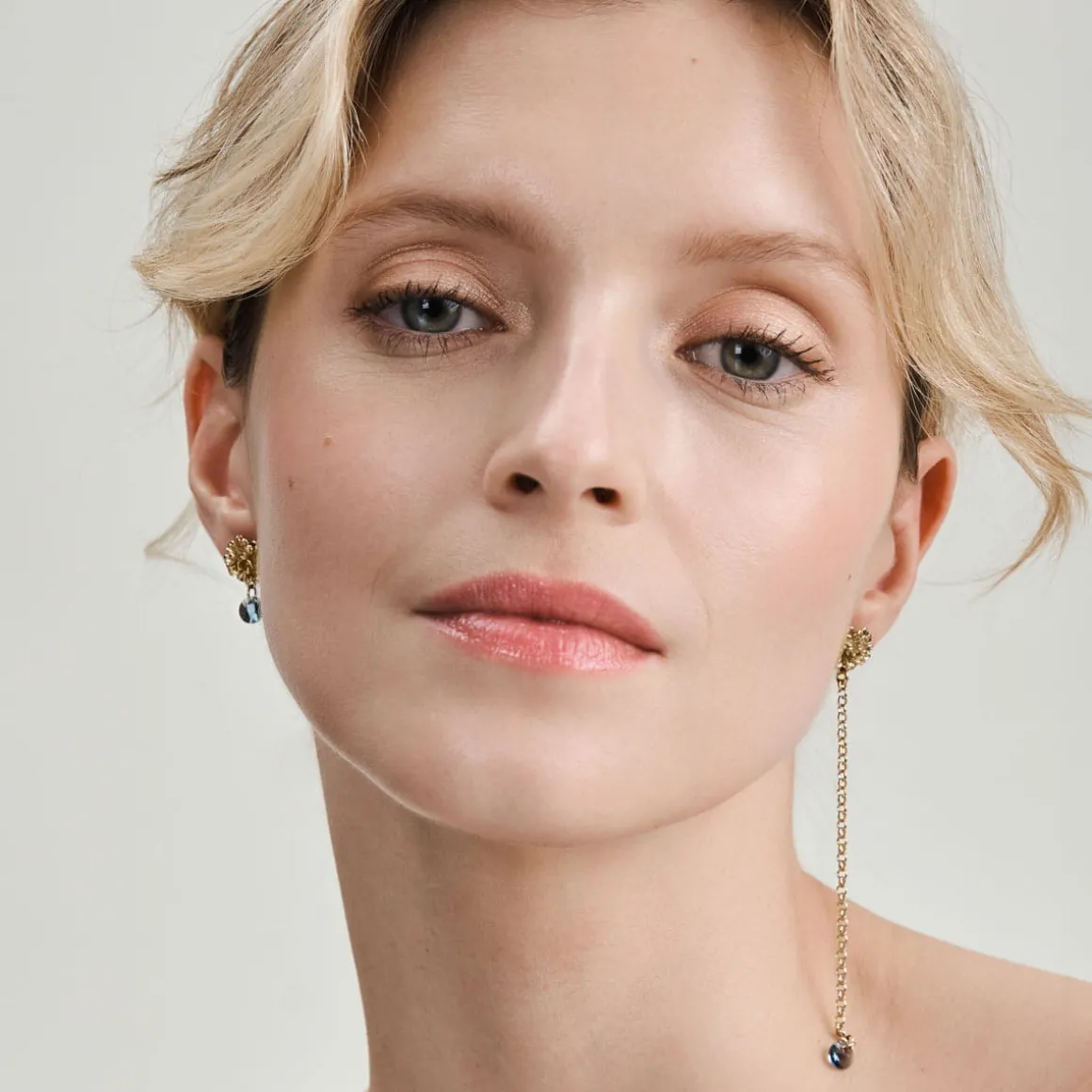 ORSKA jako niepoprawna entuzjastka zielonych krajobrazów i otwartych przestrzeni stworzyła kolekcję Bery, która hołduje doskonałości naturalnych form. Szanując wdzięk roślin w swoich projektach starała się jak najmniej ingerować w ich faktyczny kształt. Asymetryczne, wiszące kolczyki w kształcie kwiatów zostały ręcznie wykonane z pozłacanego mosiądzu i ozdobione niebieskimi kryształami Swarovski Elements. Delikatna i kobieca biżuteria w romantycznym stylu będzie idealnym wyborem dla osób kochających naturę, które nieustannie czerpią z niej siłę i inspirację.