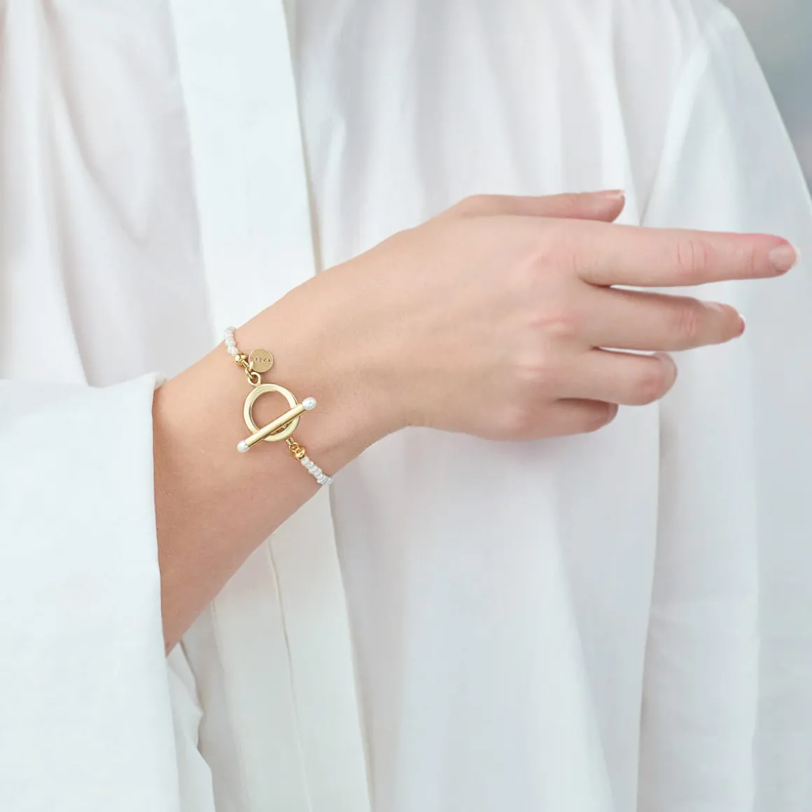 Kolekcja Astro niczym Mleczna Droga rozświetli krótkie dni i długie noce. Bransoletka została wykonana ręcznie z pereł słodkowodnych i pozłacanego mosiądzu. Sznur drobnych pereł wieńczy dekoracyjne zapięcie na skobelek, zdobione kolejnymi perełkami. Ich opalizująca powierzchnia daje efekt trójwymiarowości, ciepła i magii na miarę całej galaktyki. Minimalistyczna i elegancka bransoletka doskonale sprawdzi się w wielu różnych zestawieniach.