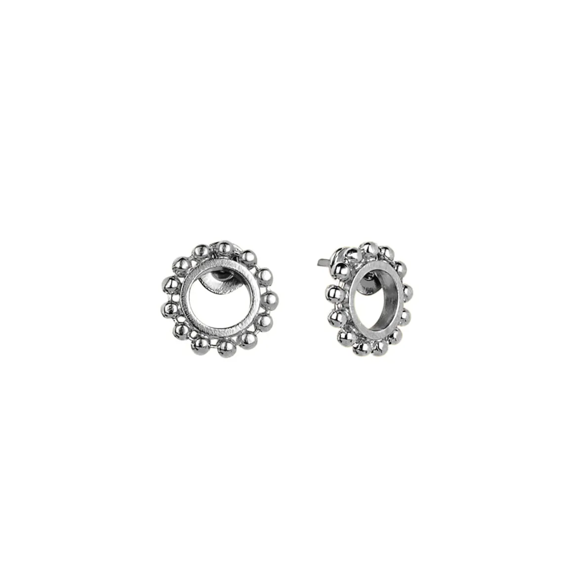 Subtelne kolczyki na sztyfcie wykonane zostały ręcznie ze srebra. Okrągłe ogniwa tworzą elegancką ramę dla dekoracyjnych kulek o niewielkich rozmiarach. Dzięki uniwersalnemu charakterowi i eleganckiej formie będą świetnym uzupełnieniem wielu kreacji zarówno codziennych jak i wieczorowych. Minimalistyczny design sprawdzi się także w towarzystwie klasycznej bransoletki z kolekcji Ray.