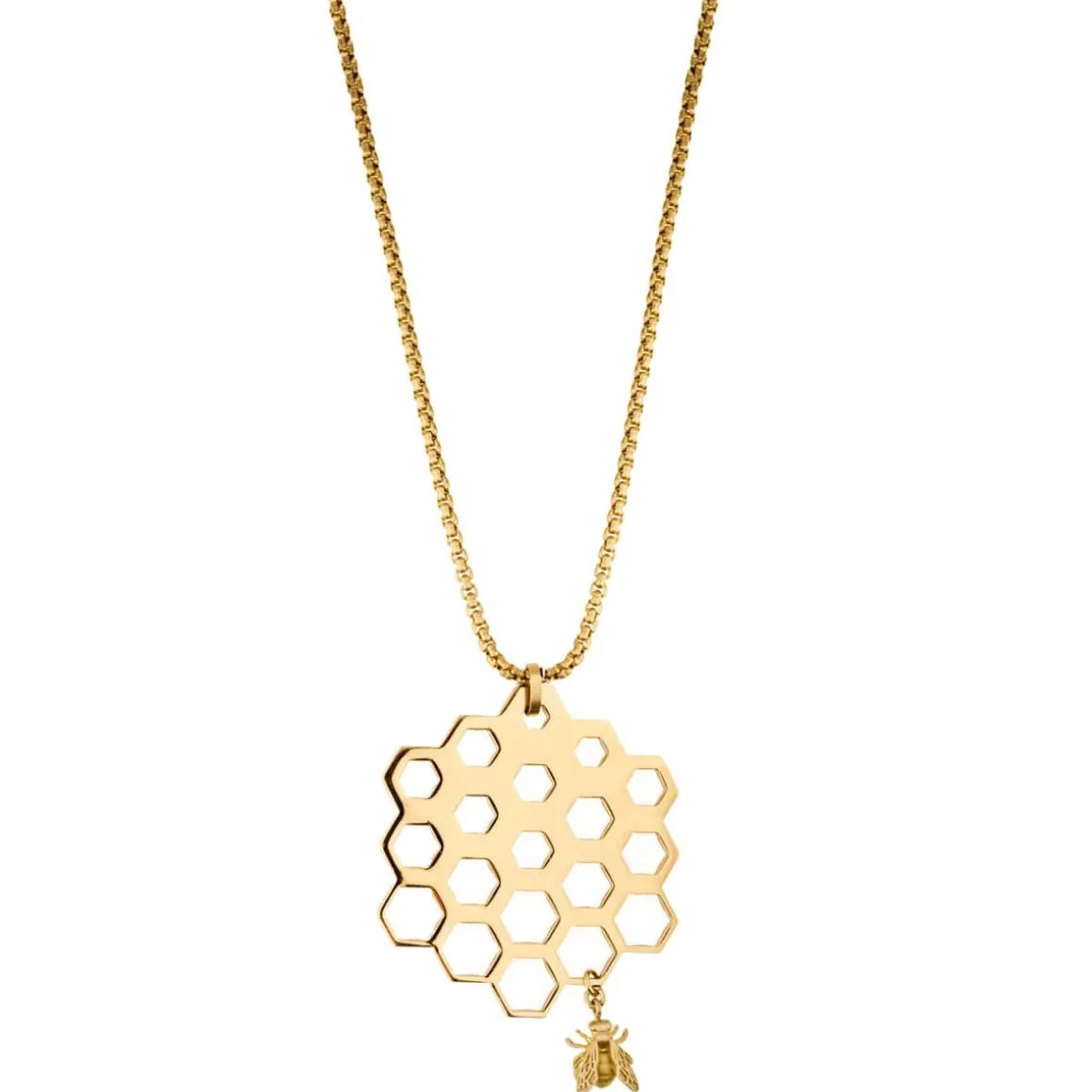 Artystyczny, ręcznie wykonany naszyjnik z kolekcji Apis został zainspirowany niestrudzoną pracą pszczół i ich perfekcyjnymi dziełami. Te pożyteczne owady stojące na straży naszego ekosystemu to jednocześnie wybitni inżynierowie, których precyzji niełatwo dorównać. ORSKA podjęła wyzwanie, projektując ażurowe elementy inspirowane plastrami miodu. Geometryczny, heksagonalny wisior został dodatkowo ozdobiony symboliczną pszczółką stworzoną z wykorzystaniem technologii druku 3D. Minimalistyczny design naszyjnika czyni go idealnym dodatkiem na co dzień. Świetnie sprawdzi się jako uzupełnienie casualowych strojów.