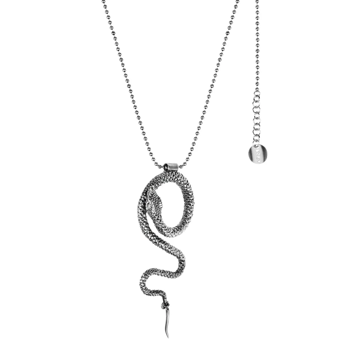 Naszyjnik został wykonany ręcznie ze srebra. Jego główną ozdobą jest zawieszka w kształcie węża – z wiernie odwzorowaną strukturą gęstych łusek. Końcówkę wężowego ogona podwieszono za pomocą drobnego ogniwa, dzięki czemu jest ruchoma. Wąż ułożony został w artystycznie zwiniętą pozę i zawieszony na łańcuszku o kulkowym splocie. Naszyjnik wykończono podwieszonym logo ORSKA oraz wygodnym zapięciem na karabińczyk. Ogniwa na łańcuszku umożliwiają zapięcie naszyjnika na dwóch wysokościach. Jasne srebro dodatkowo poddano oksydowaniu, które nadało mu ciekawy, grafitowy kolor.
