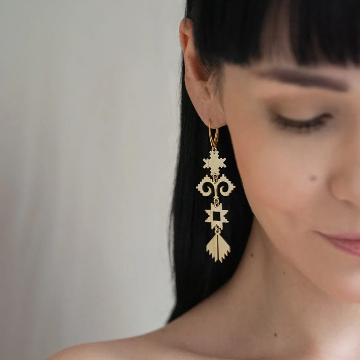 Nieskończony węzeł szczęścia jest na wyciągnięcie ręki w kolekcji ETERNAL. Do jej stworzenia Annę Orską zainspirowały zagadki, amulety i zawiłe labirynty, które od wieków przyciągają ciekawych świata. Artystyczne kolczyki zostały ręcznie wykonane z pozłacanego mosiądzu o kutej powierzchni. Smukła forma idealnie podkreśla kształt twarzy, dzięki czemu wiszące kolczyki idealnie pasują osobom z upiętymi lub krótkimi włosami. Piękny przedmiot dla inspirujących osób.