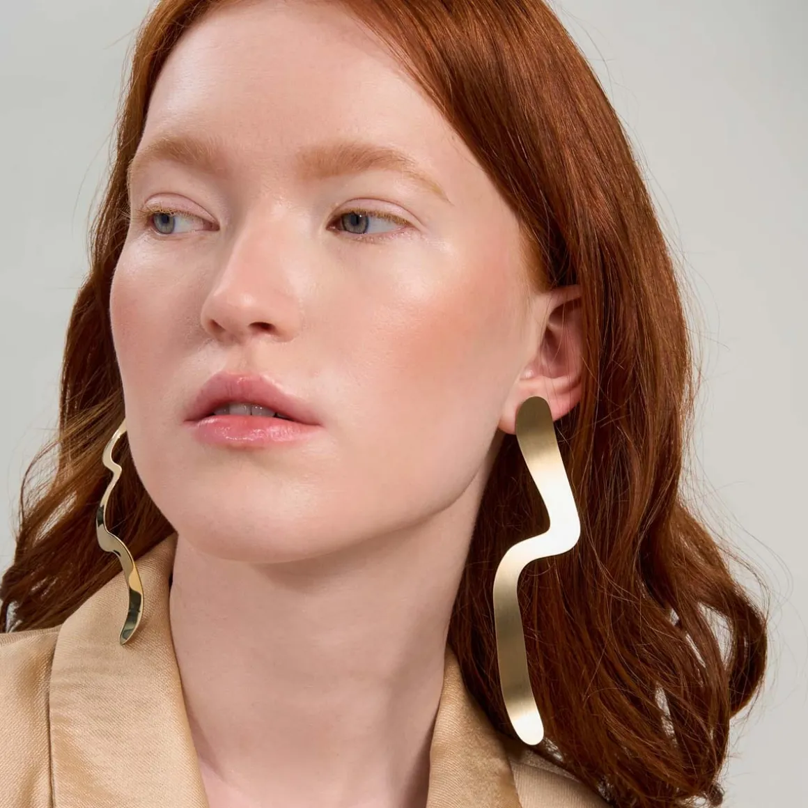 Jak nosić złote kolczyki, które optycznie wydłużają szyję i rozświetlają twarz? Asymetryczne kolczyki z kolekcji Tache mogą być noszone solo, bez potrzeby towarzystwa naszyjnika. Świetnie komponują się z delikatnymi dodatkami na dłoniach, takimi jak sztywna bransoletka Moon czy wężowy pierścionek Kembali. Doskonale pasują zarówno do codziennych stylizacji, jak i do pracy, zwłaszcza z białą koszulą w roli głównej. Dodatkowo, świetnie sprawdzą się jako element wieczorowych kreacji. Możesz także dobrać do nich broszkę lub pin. Nie obawiaj się eksperymentować ze stylizacjami, łącząc je nawet z wyrazistą biżuterią w kontrastującym, srebrnym kolorze z kolekcji Maroko.