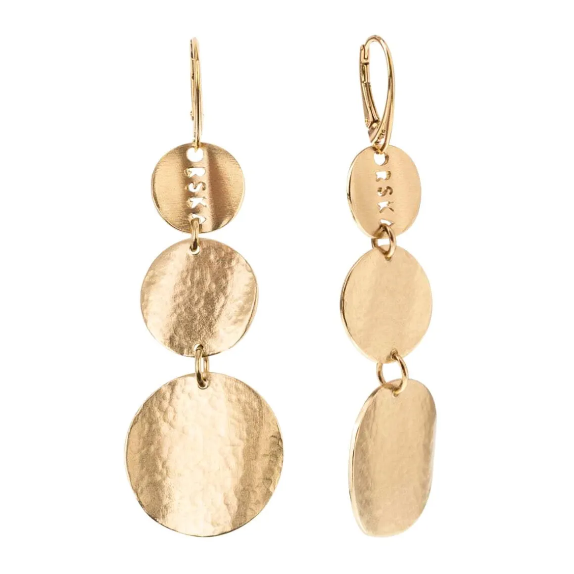 Kolekcja Rundo powstała pod wpływem wrażeń płynących z licznych morskich doświadczeń projektantki Anny Orskiej. Artystyczne, wiszące kolczyki zostały wykonane ręcznie. Dwa pozłacane koła różnych rozmiarów, które nieprzypadkowo kształtem i fakturą przypominają niespokojną toń morską, podwieszono do najmniejszej blaszki z logo ORSKA. Dzięki uniwersalnemu charakterowi i eleganckiej formie kolczyki będą świetnym uzupełnieniem wielu kreacji zarówno codziennych jak i wieczorowych.