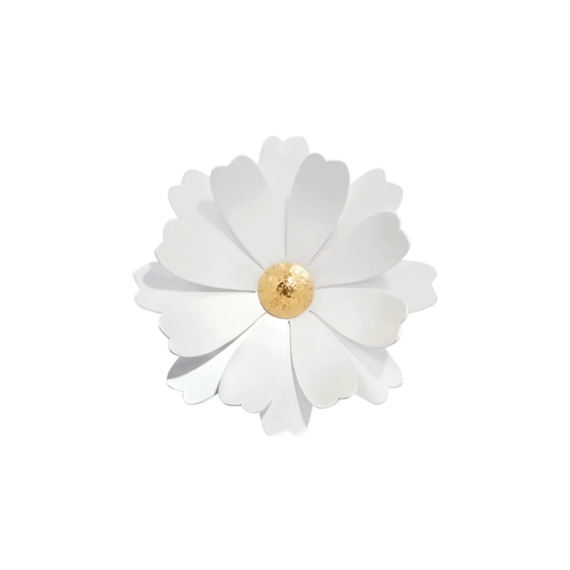 Artystyczny pin został wykonany ręcznie w pracowni ORSKA. Płatki kwiatu wycięto z mosiądzu i ręcznie pomalowano na satynową biel. Pozłacany środek dodaje kompozycji odrobinę blasku. Romantyczna, a zarazem wyrazista biżuteria w formie kwiatu rumianku pasuje do temperamentu żywiołowych osób z wyobraźnią. Pin będzie interesującym wyborem dla wszystkich kochających naturę, którzy nieustannie czerpią z niej siłę.