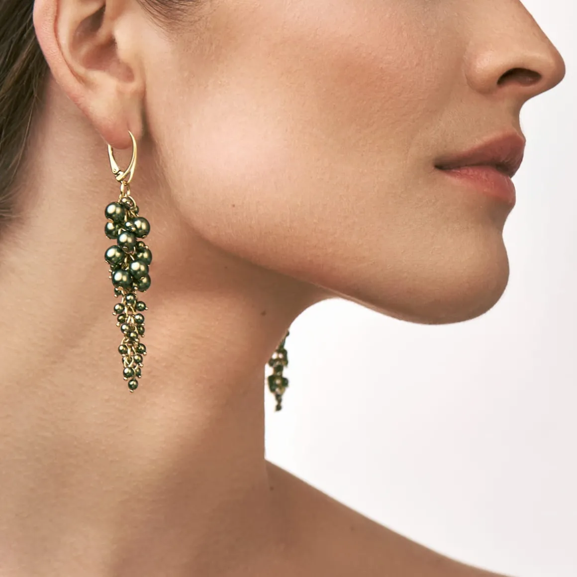 Anna Orska jako entuzjastka przyrody stworzyła kolekcję Bery, która hołduje doskonałości naturalnych form. Projektantka czerpie inspiracje z natury wiernie odwzorowując piękno fauny i flory. Oryginalne kolczyki zostały ręcznie wykonane z pozłacanego mosiądzu. Do artystycznych bigli podwieszono grona skonstruowane z wielu pereł i różnego rodzaju kryształów Swarovski Elements w kolorze szarości i zieleni. Kolczyki mienią się w świetle barwnymi refleksami. Ich ciepła i żywa kolorystyka rozświetla twarz i sprawia, że są doskonałym dodatkiem dla kobiet pełnych energii i radości.