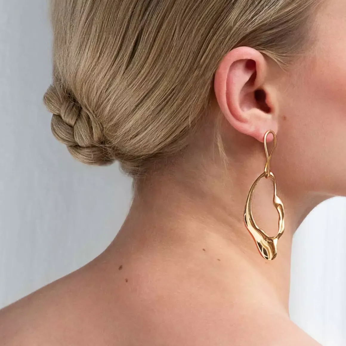 Biżuteria z kolekcji Body projektu Anny Orskiej wymaga otwartości, tak jak w rzeczywistości wymaga jej ciało, którego piękno tkwi w różnorodności. Inspiracja rzadko docenianą urodą jego bardzo funkcjonalnych fragmentów znalazła swoje ujście w hiperrealistycznych, pozłacanych formach odlanych z natury. Niesymetryczne kolczyki w kształcie małżowiny ucha, łapiącej codzienne dźwięki słów i muzyki zostały wykonane ręcznie. Piękno płynące z różnorodności wyeksponowane w bardzo artystycznym, jubilerskim projekcie czyni z niego ozdobę wspierającą akceptację ludzkiej fizyczności.