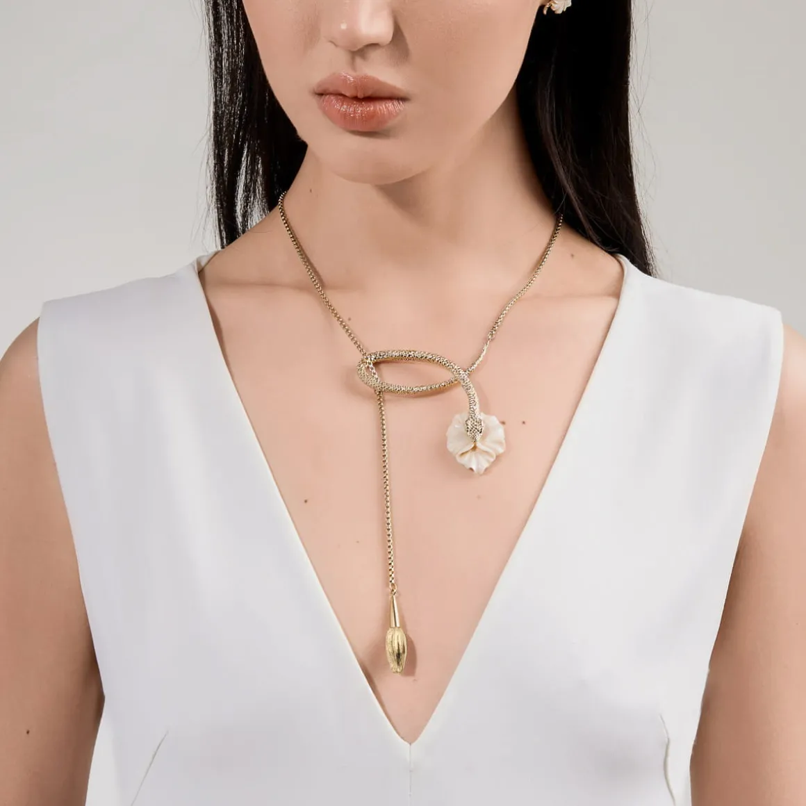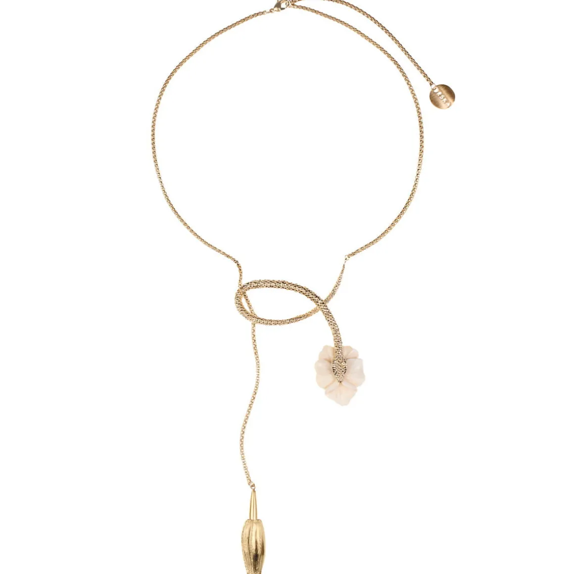 Naszyjnik został wykonany ręcznie. Pozłocony łańcuch o splocie kostki ozdobiony został dwoma jasnymi zawieszkami wyrzeźbionymi przez balijskich mistrzów. Jedna z nich przedstawia hibiskus, symboliczny balijski kwiat, w pełnym rozkwicie, druga przedstawia pąk niedojrzałego jeszcze kwiatu. Dodatkowo kwiat hibiskusa zdobi pozłocona figura węża, z precyzyjnie odwzorowanymi łuskami. Naszyjnik wykończono zawieszką z logo ORSKA, blaszką z wygrawerowanym napisem „Limited Edition” oraz wygodnym zapięciem na karabińczyk. Ogniwa umożliwiają zapięcie naszyjnika na dwóch wysokościach. Naszyjnik z hibiskusem doda lekkości wieczornym stylizacjom, a te codzienne zyskają dzięki niemu odrobinę blasku i fantazji.