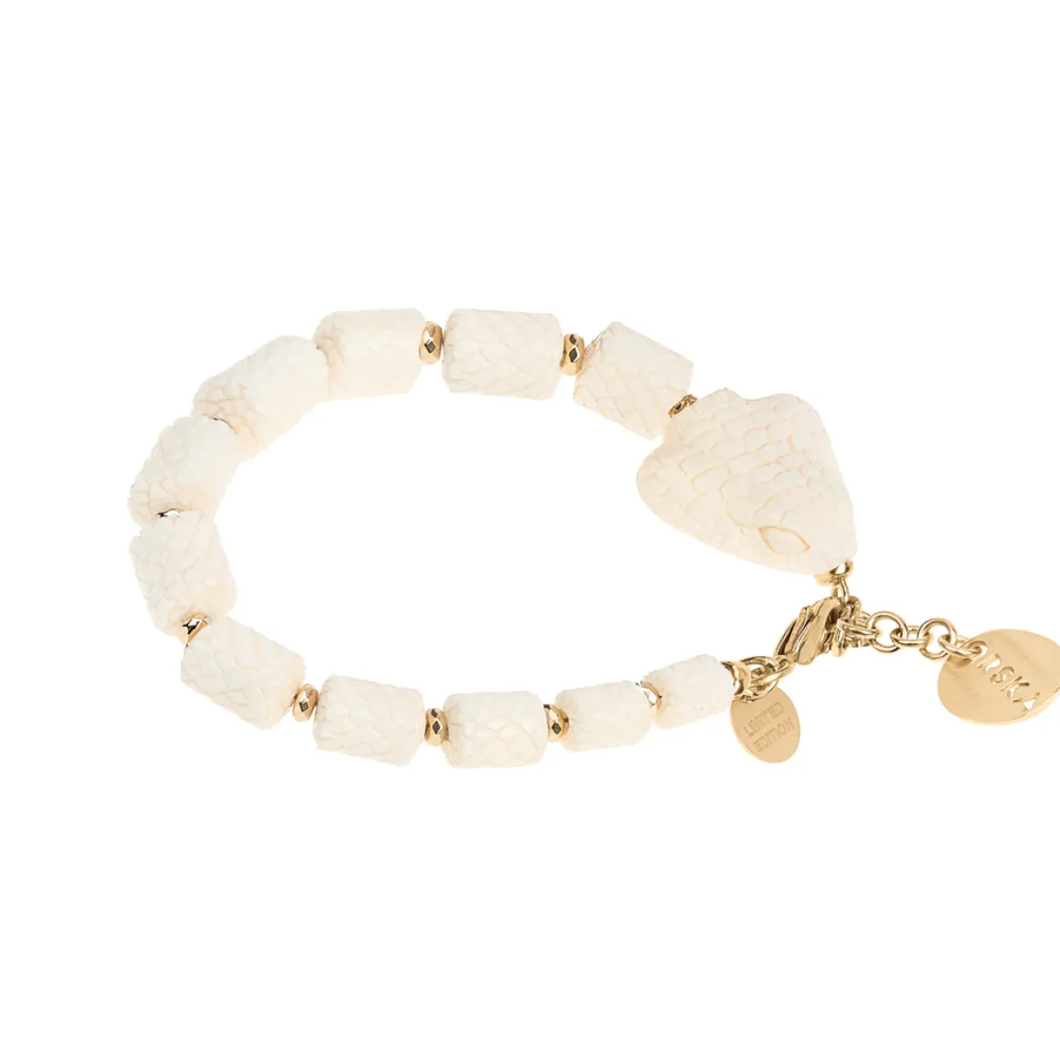 Ręcznie wykonana bransoletka w kształcie węża jest prawdziwym dziełem balijskiej sztuki. Balijscy artyści przez kilkanaście godzin rzeźbili zdobione korale. Po przetransportowaniu z indonezyjskiej wyspy do pracowni ORSKA, jubilerzy złożyli je w elegancki sznur i ozdobili pozłacanymi elementami. Całość została wykończona wygodnym karabińczykiem, blaszką z napisem „Limited Edition” oraz logo ORSKA. Szczególną uwagę przyciąga głowa węża, z precyzyjnie wykonanymi detalami. Bransoletki ORSKA są dostępne w różnych rozmiarach, zarówno dla kobiet, jak i mężczyzn. Na naszej stronie internetowej w zakładce „rozmiary” znajdziesz wskazówki, jak wybrać odpowiedni rozmiar bransoletki.
