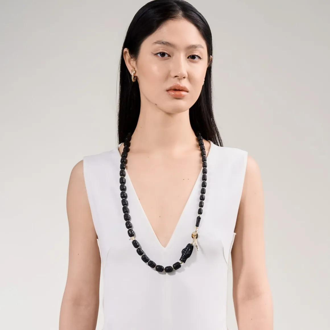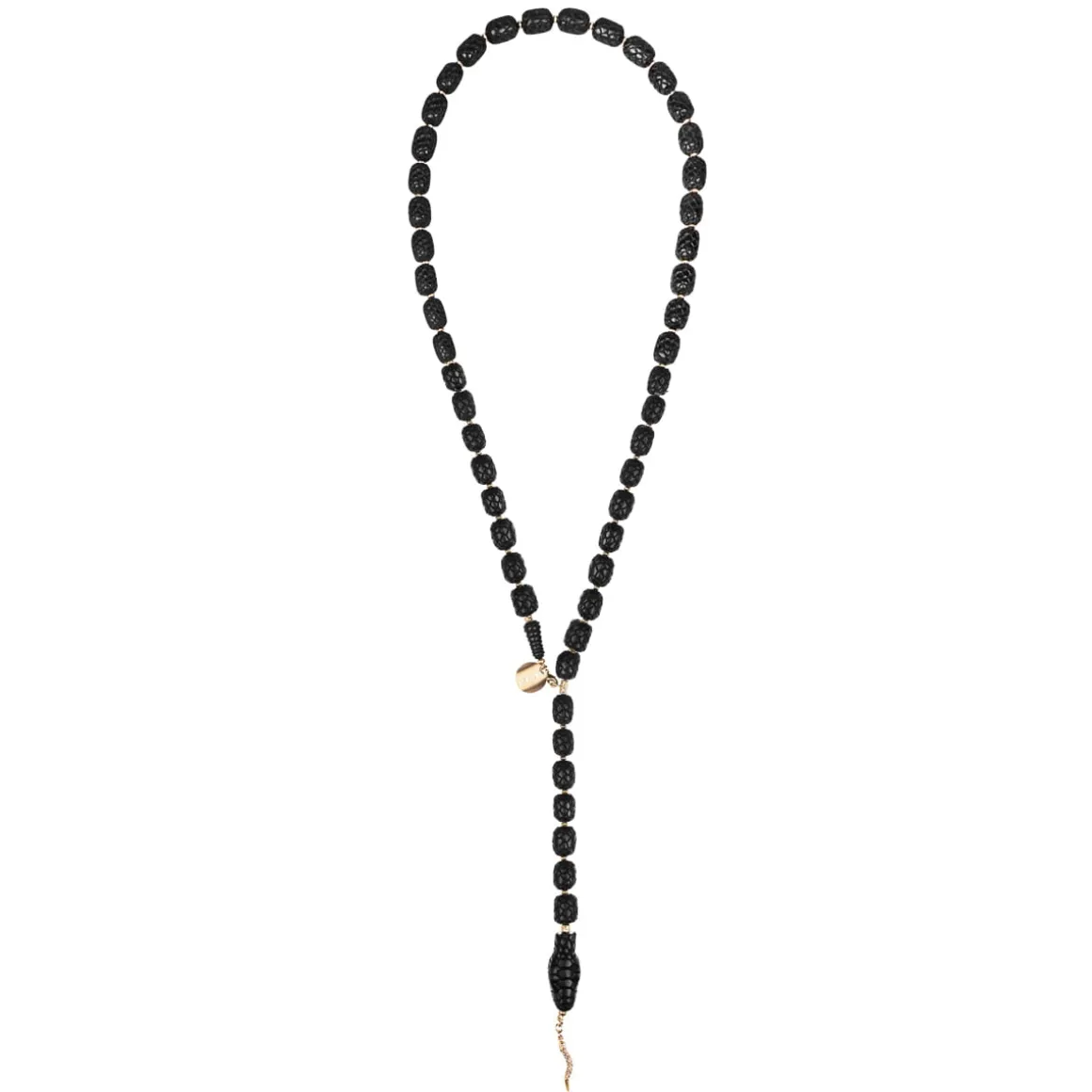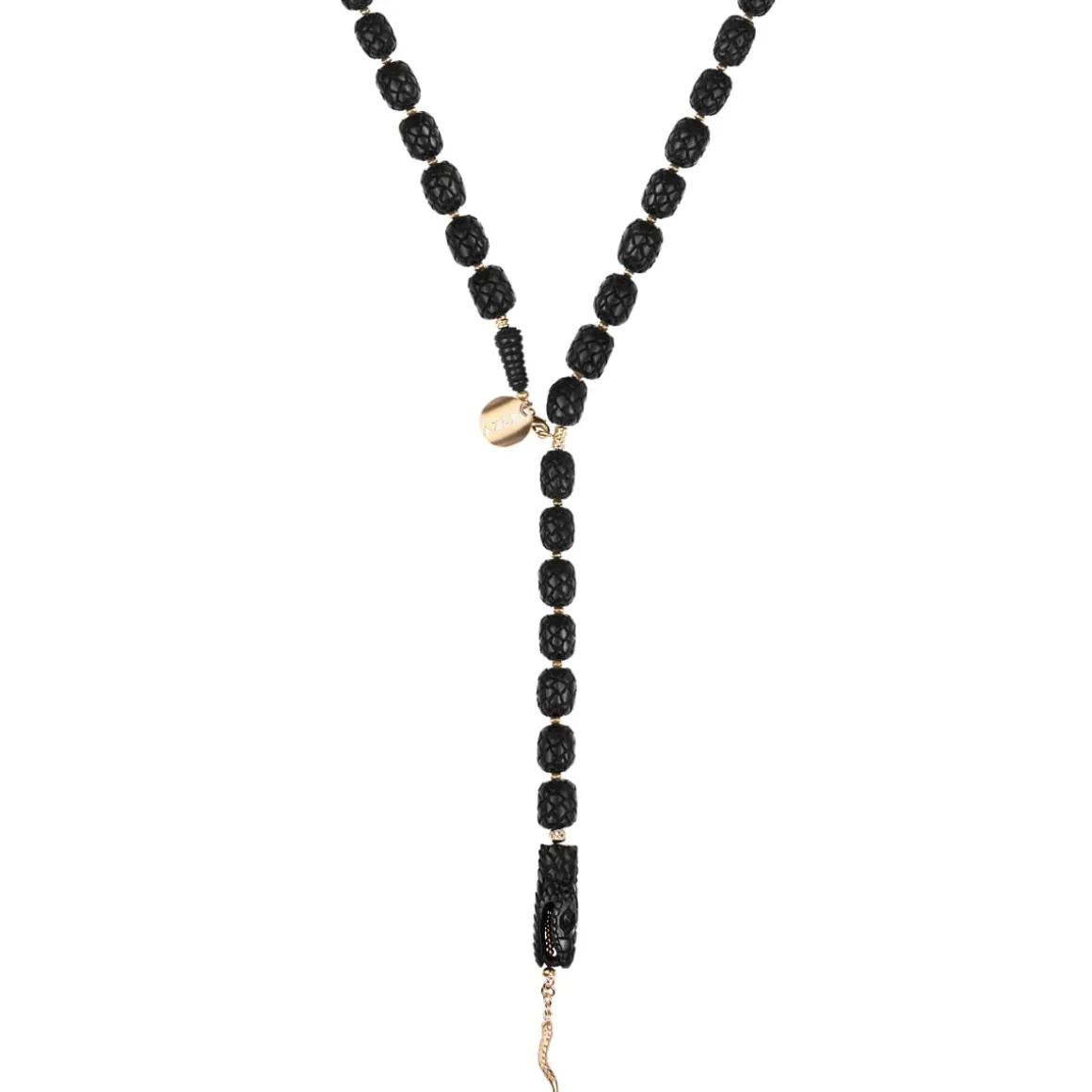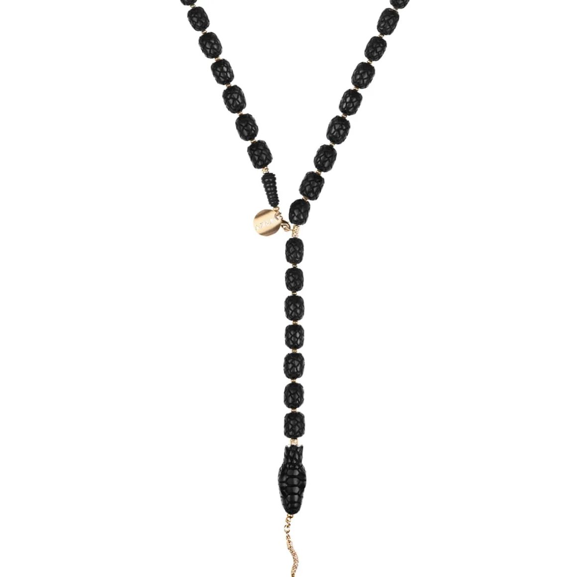 Naszyjnik w kształcie węża rzeźbiony był przez balijskich mistrzów przez kilkanaście godzin w drewnie różanym. Wprost z Bali misternie rzeźbione elementy w ciemnym kolorze trafiły do pracowni ORSKA. Jubilerzy złożyli je w sznur i przepletli każdy fragment galwanizowanym hematytem. Cała kompozycja została wykończona elementami z pozłacanego mosiądzu: wygodnym karabińczykiem, blaszką z wygrawerowanym napisem „Limited Edition” oraz logo ORSKA. Na szczególną uwagę zasługuje głowa węża z precyzyjnie wykonanymi drobnymi elementami: oczami oraz paszczą, w której widać pozłacany język przechodzący w zawieszkę naszyjnika.