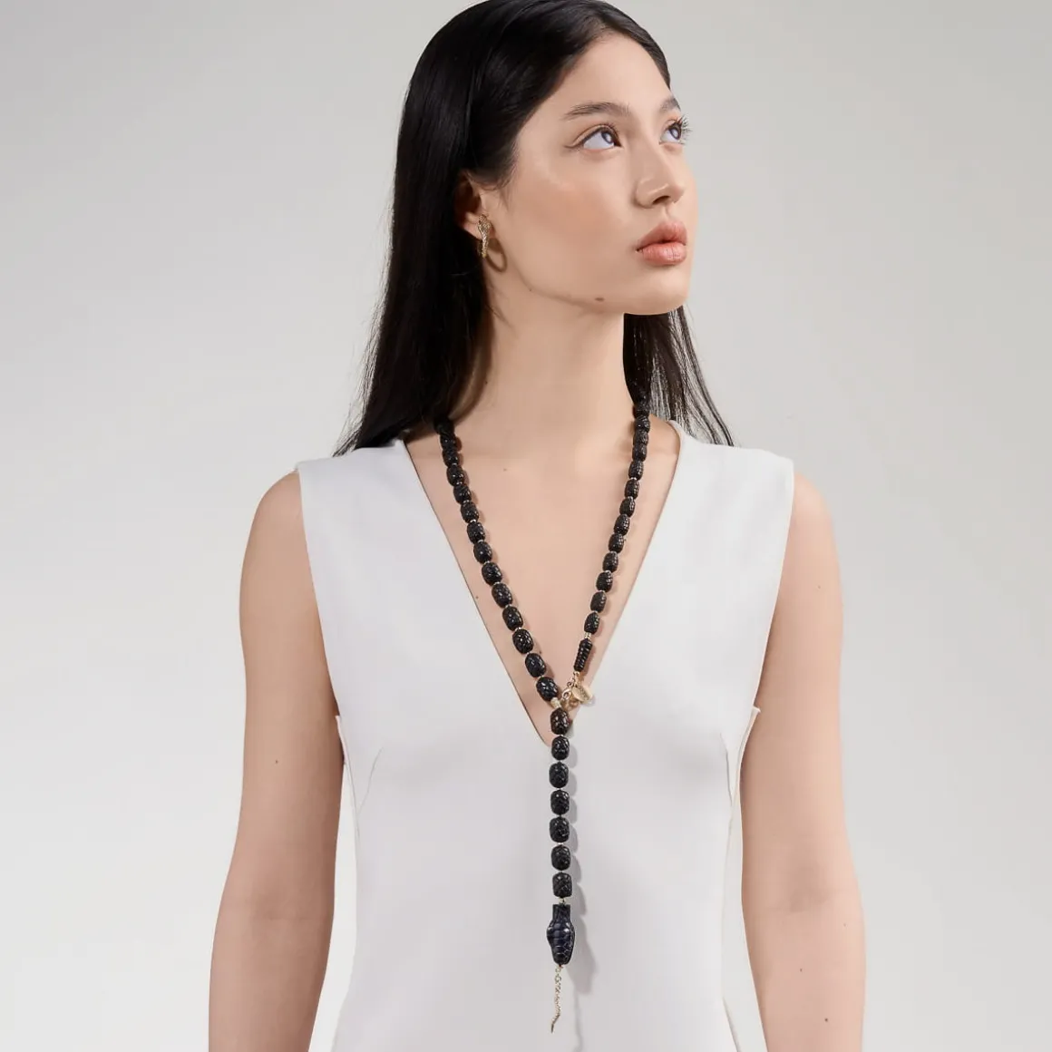 Długi naszyjnik sprawdzi się zarówno w damskiej, jak i męskiej garderobie. Możesz go nosić na trzy sposoby – jako długi łańcuch, jako krótki podwójny łańcuch owinięty wokół szyi lub jako długi naszyjnik typu krawat (zapięty w połowie). Naszyjnik może być noszony klasycznie, z przodu – sprawdzi się zarówno w połączeniu z luźnymi koszulami, jak i dopasowanymi golfami czy wieczorowymi sukienkami. Ale efektownie i oryginalnie zaprezentuje się zwisając swobodnie na plecach – przyciągnie spojrzenia i wyróżni z tłumu.