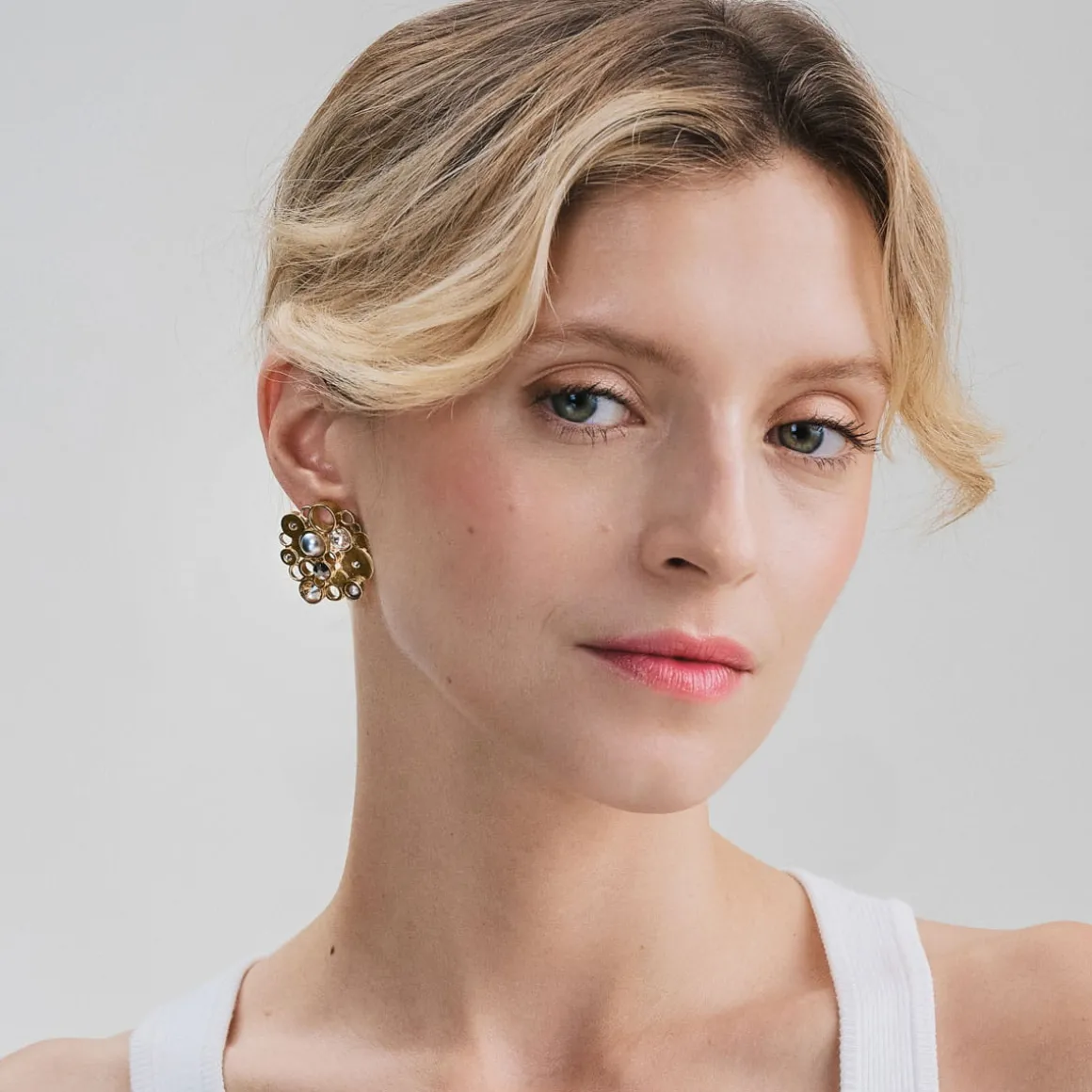 Kolekcja Soda to dyskretny flirt klasyki z nowoczesnością. Tradycyjna elegancja pereł została subtelnie przełamana współczesnymi kryształami, osadzonymi w pozłacanych elementach wykonanych w technologii druku 3D. Kremowa biel pereł, rozświetlona kryształami, wyraźnie kontrastuje z ciepłym mosiądzem. Artystyczne, wiszące kolczyki zostały wykonane ręcznie z pozłacanego mosiądzu. Efektowna biżuteria będzie idealną ozdobą dla wielbicieli nieoczywistych rozwiązań, spragnionych unikalnych doznań estetycznych.