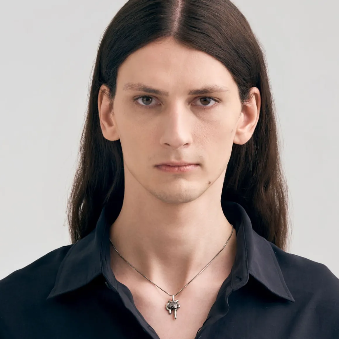 Naszyjnik w kształcie litery V z kolekcji Meteoros został wykonany ze srebra próby 925. Minimalistyczny łańcuszek o kulkowym splocie ozdobiliśmy nieregularną zawieszką z fragmentem meteorytu Campo del Cielo, który wygląda jak cząstka kosmicznej skały. Srebrzysta oprawa miękko otula surową, nieregularną bryłkę, uwypuklając jej nieziemski urok. Całość zapinana jest na karabińczyk, co dodaje biżuterii funkcjonalności i wygody. Kompozycję zamyka logo ORSKA i kilkucentymetrowa przedłużka.