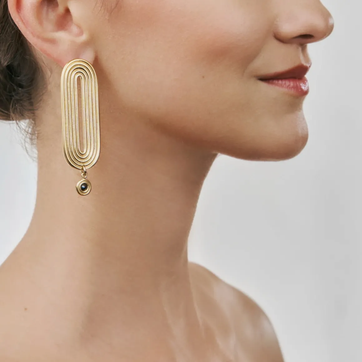 Ludzkie życie zaczyna się i kończy na oddechu. W niektórych miejscach wierzy się, że dusza wchodzi w człowieka wraz z pierwszym oddechem. W naturze powietrze towarzyszy nam w sposób namacalny w postaci wiatru. Jest symbolem kreatywności i uważności. W pracowni ORSKA przełożyliśmy moc żywiołu powietrza na eleganckie kolczyki, które zostały wykonane ręcznie z mosiądzu, a następnie pokryte złotem. Owalny kształt naśladuje dynamikę nieustannie pędzącego łuku. Kompozycję uzupełnił asymetryczny kryształ w kolorze hematytowej szarości. Kolczyki inspirowane żywiołem powietrza to propozycja dla nowoczesnych osób, które szukają ponadczasowych rozwiązań. Kolczyki z kolekcji Holos sprawdzą się również w roli prezentu dla bliskich.