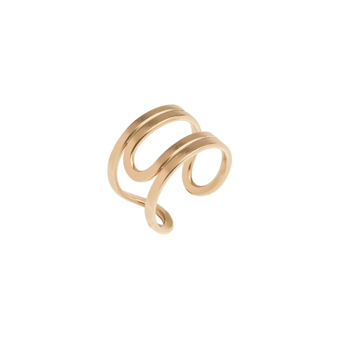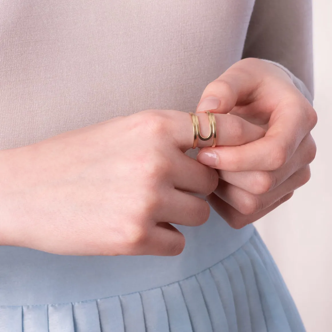 Pracujące trybiki, zawiłe układy, systemy przełożeń i środki ciężkości uzależniają swoim warczeniem, mruczeniem i stukaniem. Anna Orska postanowiła uwiecznić w biżuterii stare, najbardziej ukochane spectrumny, remigiusie i maszyny, które latami stukania zasłużyły na odpoczynek. Nadać im drugie życie. Pierścionek z kolekcji Machiny w kształcie spinacza do papieru został wykonany ręcznie z pozłacanego mosiądzu. Prostota i szorstkość formy przywodzą na myśl skojarzenia z misterną konstrukcją maszyn i automatów. Świetnie prezentuje się w towarzystwie bransoletki z tej samej kolekcji.
