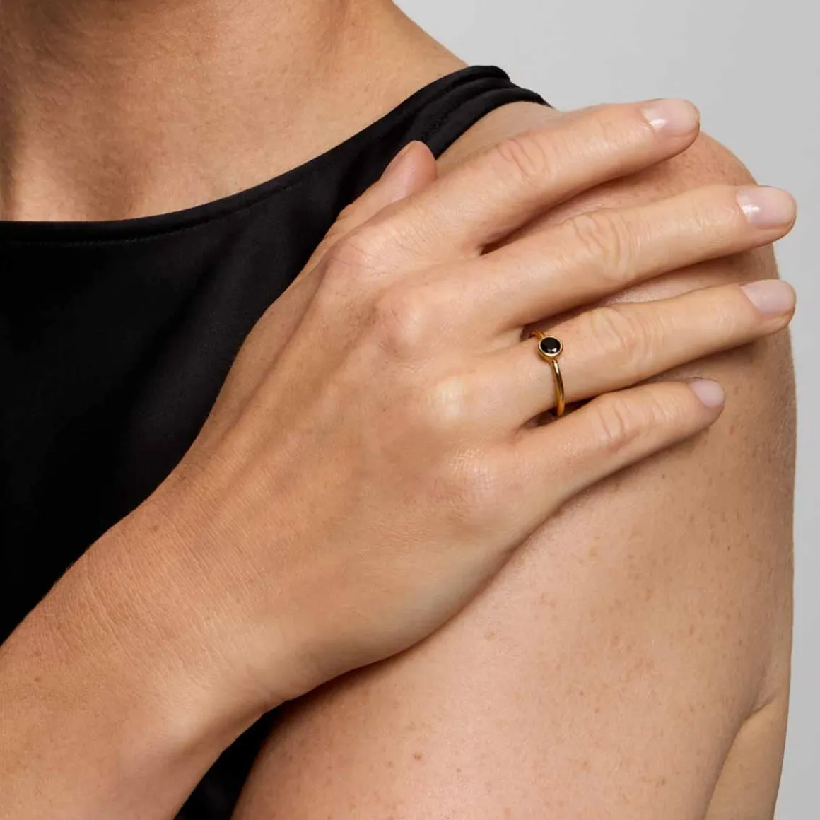 Pozłacany pierścionek z czarnym onyksem z kolekcji Aurora