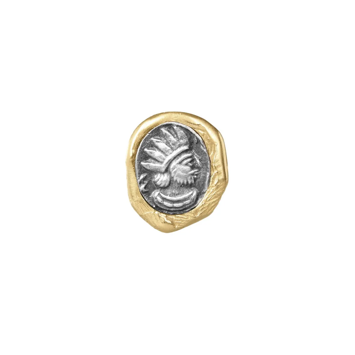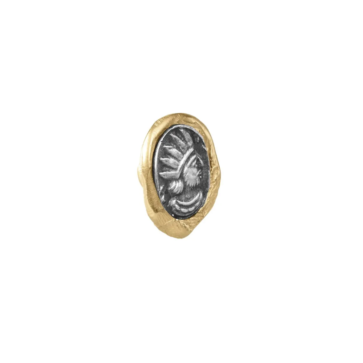 Pin został ręcznie wykonany w pracowni ORSKA. W pozłacanym mosiądzu, niczym w lakowej pieczęci, symbolicznie odcisnęliśmy ślad linii papilarnych jubilerów i rzemieślników, którzy go współtworzyli. Ta subtelna struktura tworzy delikatny detal, który zdobi pozłacaną ramę dla medalionu umieszczonego w środku pieczęci. Wykonany z oksydowanego srebra próby 925 przedstawia figurę władcy. Archetyp ten ma silne, uniwersalne i głęboko symboliczne znaczenie – zarówno w kulturze, jak i w psychologii, religii czy mitologii. Król nie jest tylko postacią polityczną – to archetyp, symbolizujący porządek, władzę, boskość i odpowiedzialność.