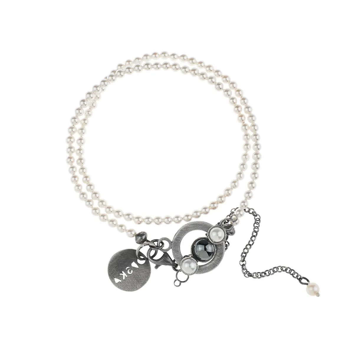 Kolekcja Soda to subtelny flirt klasyki z nowoczesnością. Kremowa biel pereł słodkowodnych wyraźnie kontrastuje z grafitową szarością metalu. Artystyczna bransoletka została wykonana ręcznie. Delikatny sznur pereł dwukrotnie oplata nadgarstek. Całość zdobi zapięcie na bogato zdobiony skobelek. Delikatna biżuteria będzie idealną ozdobą dla wielbicieli nieoczywistych rozwiązań, spragnionych unikalnych doznań estetycznych.