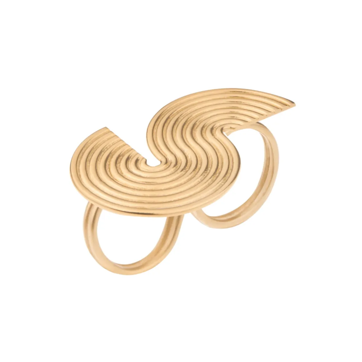 Woda niesie ze sobą życie. Jest symbolem odrodzenia i wytrwałości. W pracowni ORSKA przełożyliśmy majestat żywiołu wody na oryginalny pierścionek na dwa palce. Pierścionek z kolekcji Holos został odlany z mosiądzu, a następnie pokryty złotem. Na dwóch, połączonych ze sobą, cienkich obrączkach umieściliśmy autorski symbol wody. Znak ten został zainspirowany miękką falą morskich pływów. Jubilerzy ORSKA złożyli go z linii mosiężnych pręcików, które nadają całości eleganckiego charakteru. Pierścionki wykonujemy zarówno w rozmiarach damskich jak i męskich. W zakładce rozmiary znajdziesz wskazówki, jak dobrać właściwy rozmiar pierścionka.