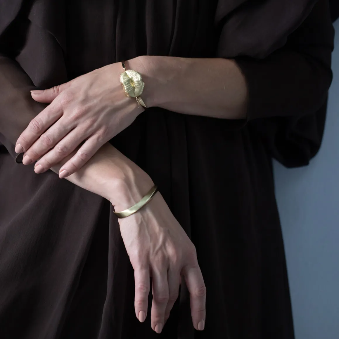 Indywidualna maestria ludzkiego ciała, wszystkie tworzące je kropki i kreski, przykuły uwagę Anny Orskiej. Projektantka zinterpretowała miękkie, nieregularne linie kształtu ciała w artystycznym, jubilerskim projekcie. Delikatna bransoletka została wykonana ręcznie z pozłacanego mosiądzu. Biżuteria dobrze komponuje się z pozostałymi wzorami z kolekcji Body.