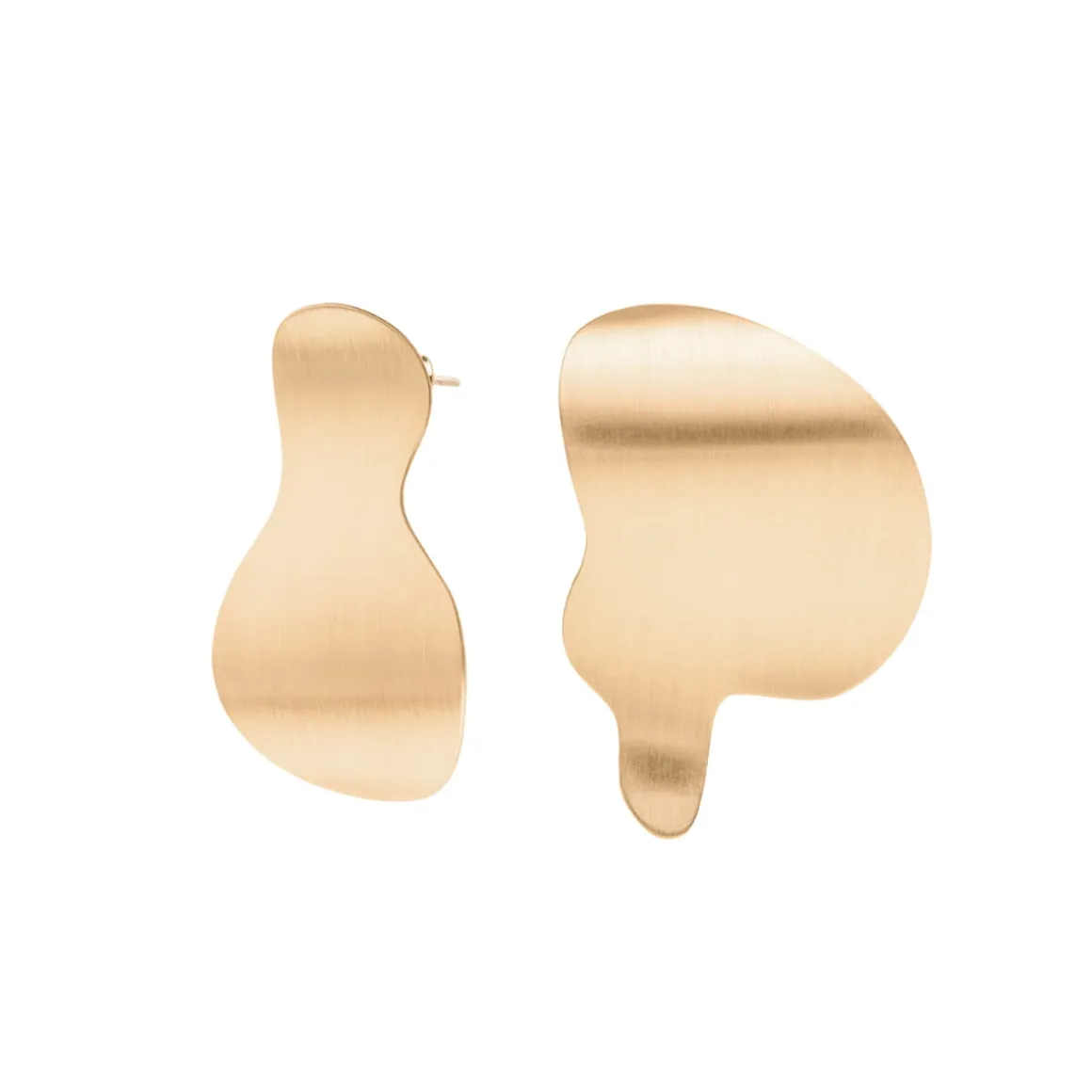 Kolczyki wykonane zostały ręcznie w pracowni ORSKA. Oryginalny design to nie wszystko! Kolczyki są lekkie i wygodne, dobrze się noszą i nie męczą uszu. Miękkie formy ekspresywne połączone zostały w asymetryczną parę, dzięki czemu kolczyki z kolekcji Tache jeszcze bardziej wyróżniają się na tle klasycznej biżuterii. Wykonane z pozłacanego mosiądzu o satynowym wykończeniu pasują niemal do każdej stylizacji i przetrwają próbę czasu. Sztyft i zapięcia kolczyków wykonano ze srebra.