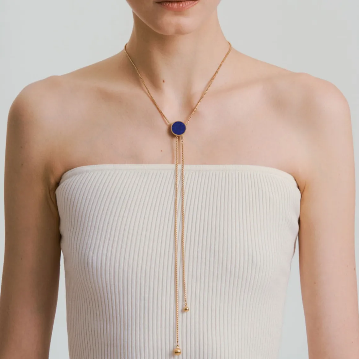 Naszyjnik typu krawat (znany również jako lariat) to dodatek, który możesz stylizować na wiele różnych sposobów. Naszyjnik świetnie współgra z bluzkami, sukienkami lub kombinezonami z głębokim dekoltem w kształcie litery V. Podkreśla linię dekoltu, dodając elegancji. Możesz też nosić go na gładki golf lub bluzkę z wysokim kołnierzem – długi łańcuszek optycznie wydłuży sylwetkę. Sprawdzi się także jako dodatek do wieczorowych sukni z odkrytymi plecami – możesz założyć go tak, aby jego część spływała wzdłuż pleców. Naszyjnik krawatkę możesz łączyć z innymi krótszymi naszyjnikami, tworząc ciekawą warstwową kompozycję. Duet doskonały utworzy na przykład z krótkim naszyjnikiem z koralami lapis lazuli lub efektowną kolią z kolekcji Orini.