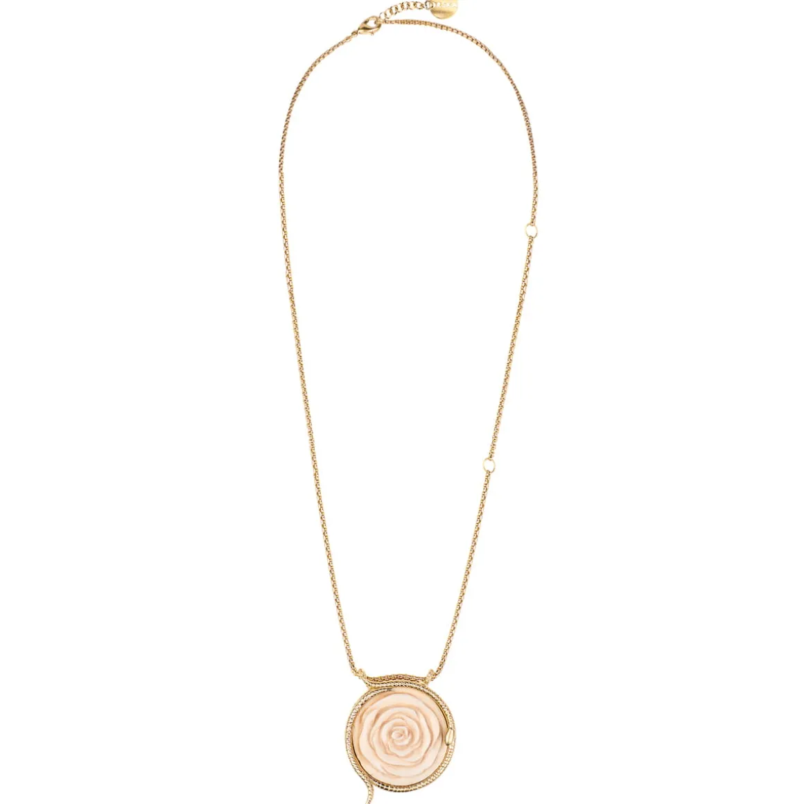 Krótki naszyjnik z rzeźbioną zawieszką w kształcie kwiatu róży
