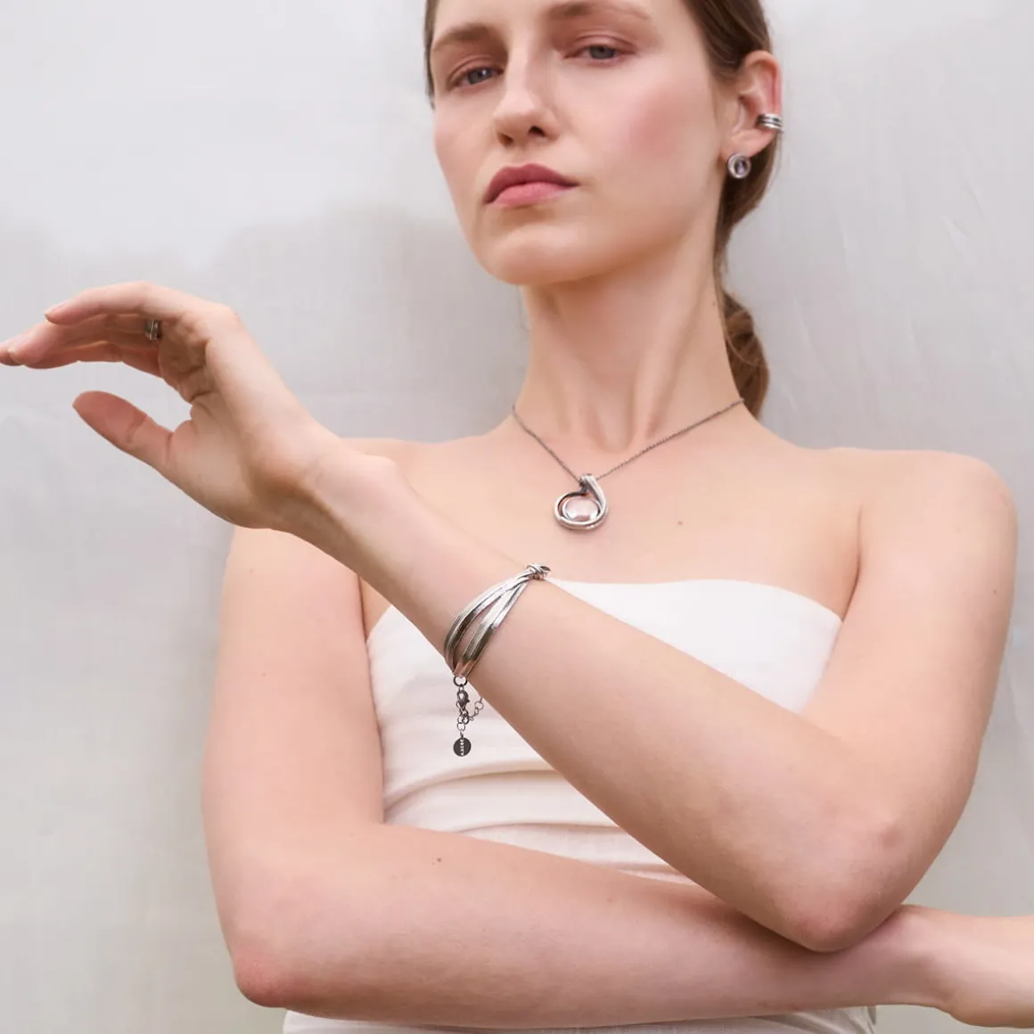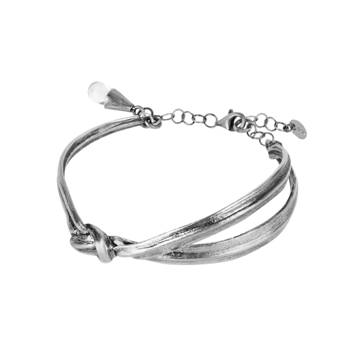 Bransoletka z kolekcji Prato wyróżnia się subtelnym, a jednocześnie eleganckim wyglądem. Dwa delikatne, srebrne źdźbła trawy splecione w jedno, tworzą formę lekką, ażurową formę. Misterny węzeł jest przypomnieniem, że stanowimy część większej całości, a nasze życie splata się z życiem natury. Kryształ górski, w kształcie kropli rosy, subtelnie ozdabia bransoletkę, dodając jej blasku. Bransoletka jest wyposażona w regulowane zapięcie, co zapewnia komfort noszenia.