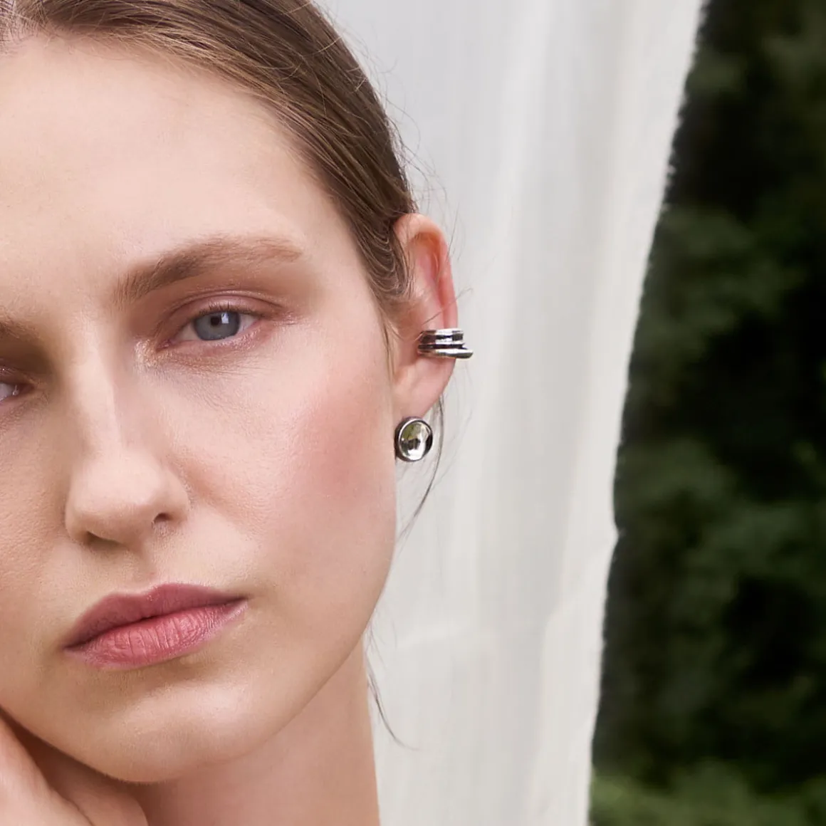 Podwójna, srebrna nausznica z kolekcji Prato