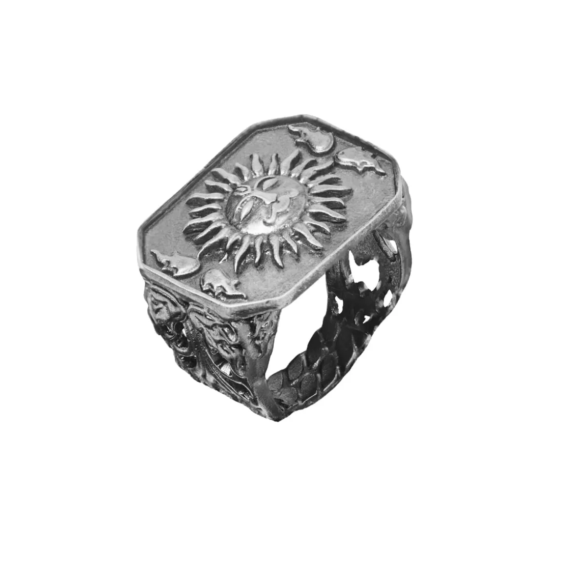 Srebrny sygnet z symbolem słońca Surija