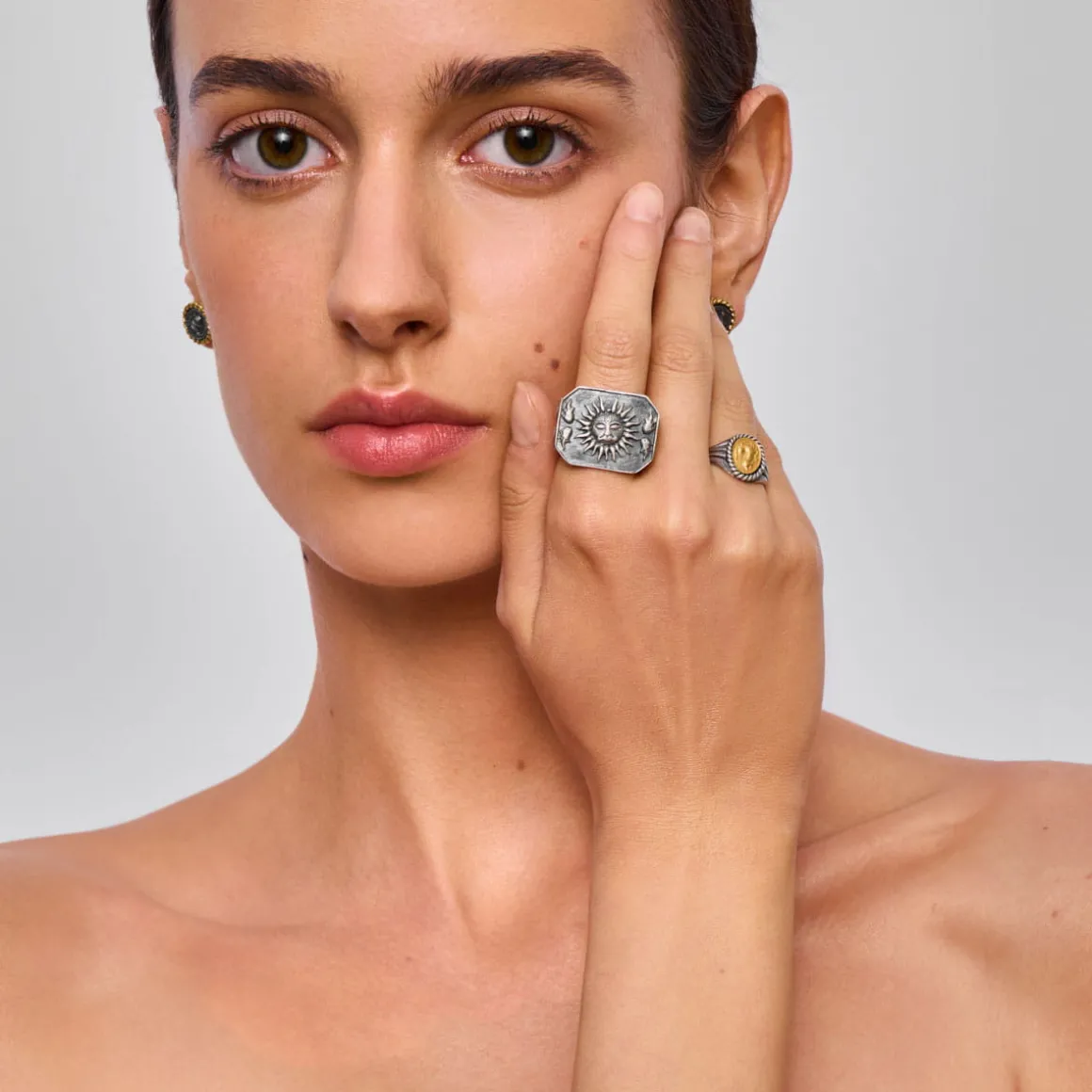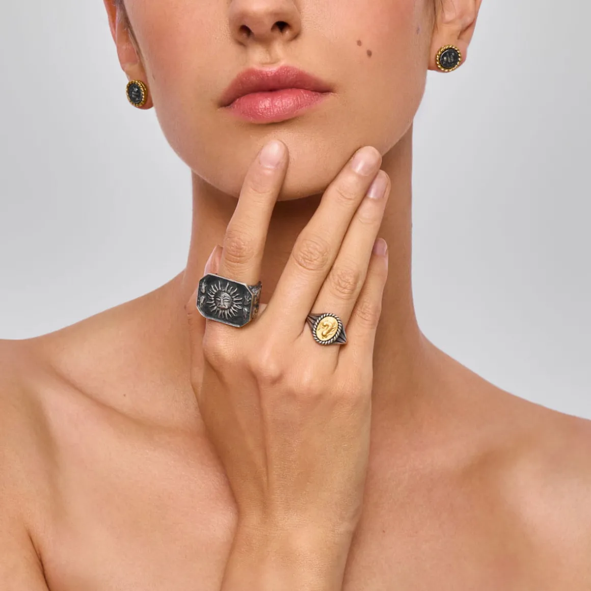 Kultura to opowieść pisana przez wieki — zbiór narracji tworzonych przez różne tradycje, które zostawiły po sobie ślady w postaci symboli i znaków. Przekraczały one granice, zmieniały się z czasem, ale zawsze pełniły ważną rolę: jednoczyły ludzi, kształtowały tożsamości, pobudzały wyobraźnię, umożliwiały porozumienie i chroniły pamięć o przeszłości, bohaterach i historiach. Z bogactwa symboli tradycji grecko-rzymskiej, hinduskiej oraz środkowoazjatyckiej zaczerpnęliśmy inspiracje do stworzenia kolekcji biżuterii Semios. Motywy te zestawiliśmy w oryginalne kompozycje, którym nadaliśmy nowe znaczenia. Każdy element kolekcji to warstwowa opowieść — palimpsest znaczeń, epok i miejsc, który łączy Cię z tym, co chcesz zapamiętać, chronić lub ponownie odnaleźć. Tam, gdzie przeszłość spotyka się z teraźniejszością, otwiera się przestrzeń na Twoją historię.