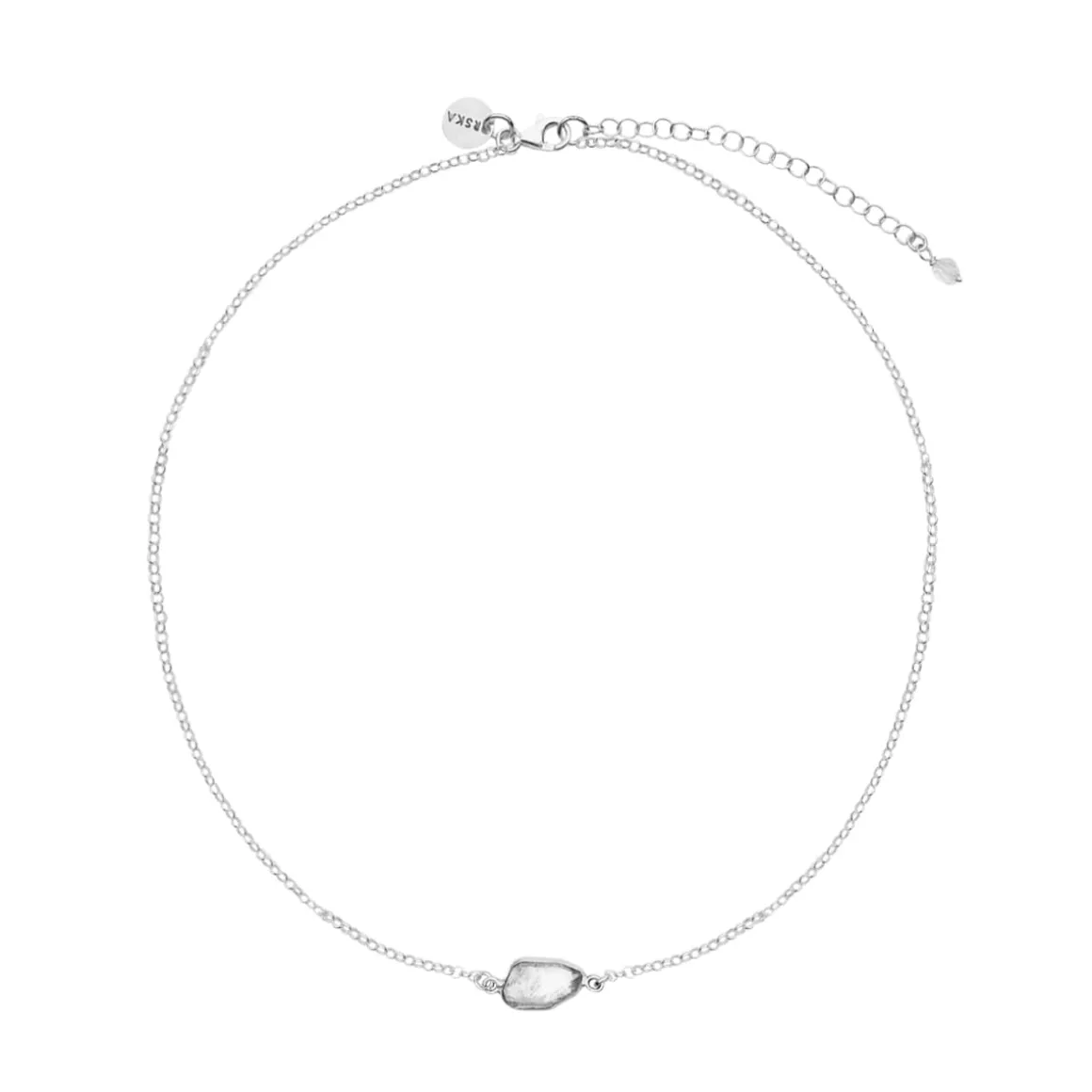 Delikatny naszyjnik został wykonany ręcznie ze srebra próby 925 oraz surowego kryształu górskiego, zwanego herkimerem. Przezroczysty minerał o naturalnej, nieregularnej formie oprawiono subtelnie tak, aby podkreślić jego autentyczny charakter i unikatowe inkluzje, które w świetle mienią się niczym drobne refleksy zorzy. Lekki łańcuszek o klasycznym splocie zwieńczony jest zapięciem z przedłużką, dzięki której można regulować długość naszyjnika i dopasować go do dekoltu. Każdy egzemplarz jest jedyny w swoim rodzaju – w naturze nie istnieją dwa identyczne kryształy, dlatego biżuteria z herkimerem zawsze pozostaje niepowtarzalna.