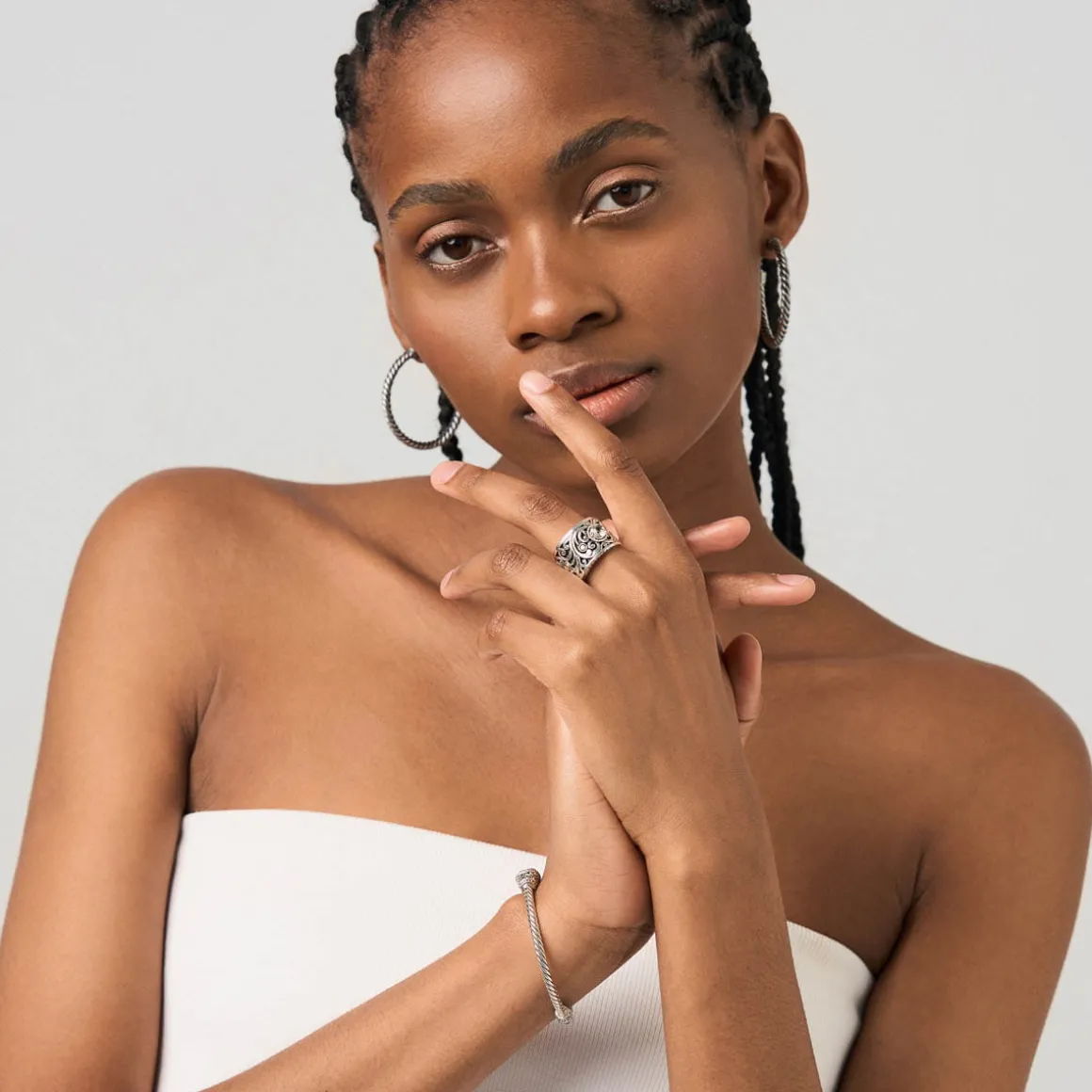 Biżuteria z kolekcji Duo to artystyczny pomost pomiędzy stylami i kulturami. Stworzona w sercu balijskiej enklawy artystycznej w Celluk, kolekcja czerpie inspiracje z bogatej tradycji rzemieślniczej tego regionu, znanego z doskonałej obróbki metalu. Proces tworzenia, w którym uczestniczą głównie kobiety, zaowocował srebrnymi bransoletkami, naszyjnikami, kolczykami i pierścionkami o wyjątkowo bogatych zdobieniach. Tradycyjne ornamenty, charakterystyczne dla tego obszaru, pięknie kontrastują z prostymi, ale mięsistymi formami biżuterii. Kolekcja Duo to harmonijne połączenie tradycji i nowoczesności, które przyciąga uwagę i zachwyca swoją unikalnością.