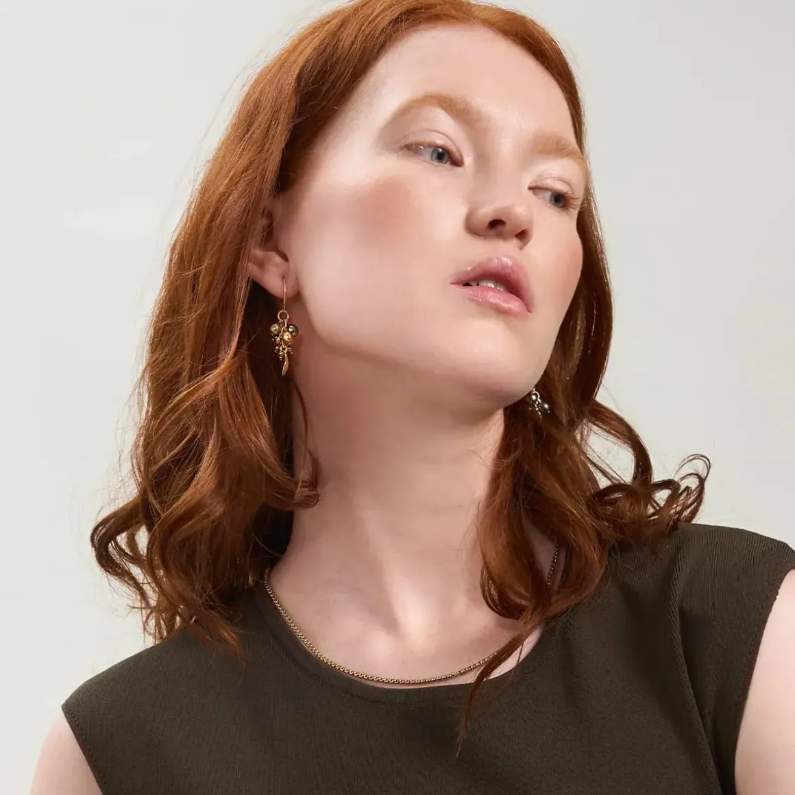 Anna Orska jako entuzjastka przyrody stworzyła kolekcję Bery, która hołduje doskonałości naturalnych form. Projektantka czerpie inspiracje z natury wiernie odwzorowując piękno fauny i flory. Wiszące kolczyki przybrały formę gron drobnych zielonych perełek, otaczających pozłacany listek. Całość mieni się barwnymi refleksami świetlnymi. Ciepła i subtelna kolorystyka kolczyków rozświetla twarz i sprawia, że są doskonałym dodatkiem dla kobiet pełnych energii i radości.
