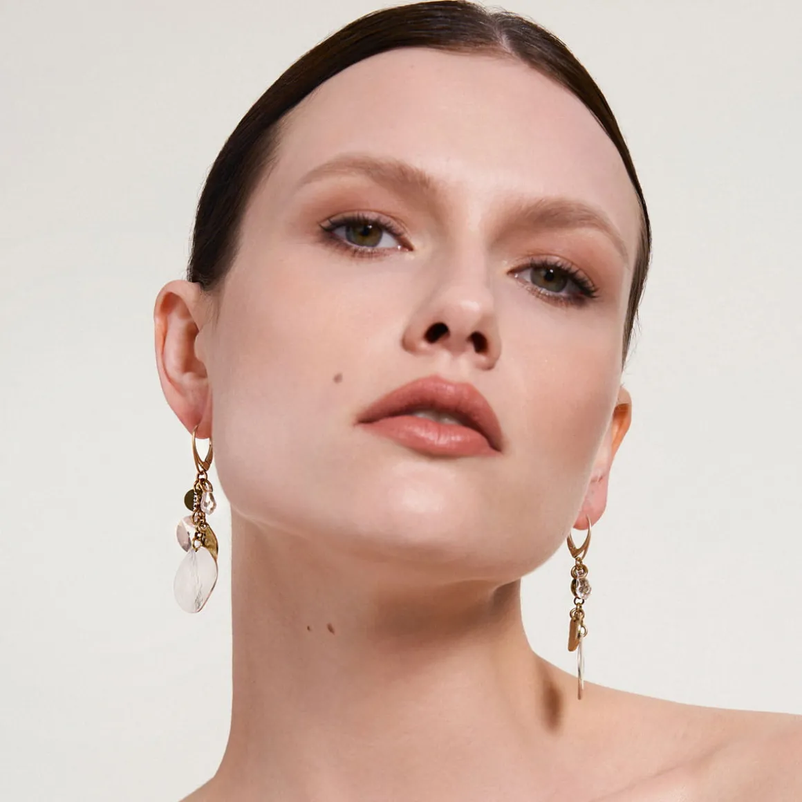 Wiszące kolczyki z iskrzącymi się w świetle kryształami to biżuteria, która będzie pasować zarówno na oficjalne spotkanie w pracy jak i na mniej formalne wyjścia z przyjaciółmi, randkę czy do kina. Długie kolczyki lubią towarzystwo zwiewnych tkanin, ale sprawdzą się nie tylko w letniej garderobie. Będą doskonałym dodatkiem także do grubych swetrów czy miękkich szali. Kolczyki świetnie wyglądają solo, jednak szczególnie efektownie prezentują się w towarzystwie innych wzorów. Zestaw je z okazałą bransoletą lub oryginalną broszką z tej samej kolekcji i śmiało przyciągaj uwagę. Złotą biżuterię o podobnej, nieregularnej powierzchni znajdziesz również w kolekcji Moon. A jeśli potrzebujesz większej dawki inspiracji polecamy wpis na naszym blogu o tym jak łączyć różną biżuterię.