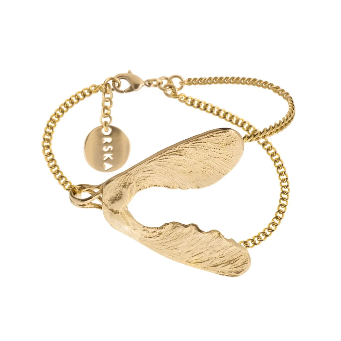 Anna Orska jako entuzjastka przyrody stworzyła kolekcję Bery, która hołduje doskonałości naturalnych form. Projektantka czerpie inspiracje z natury wiernie odwzorowując piękno fauny i flory. Oryginalna bransoletka została wykonana ręcznie z pozłacanego mosiądzu. Bransoletka ma formę podwójnego noska klonowego, do którego z jednej strony podpięte są dwa łańcuszki, a z drugiej jeden. Noski klonowe, przez wielu kojarzone z dzieciństwem i beztroską, będą idealnym wyborem dla osób kochających naturę, które nieustannie czerpią z niej siłę i inspirację.