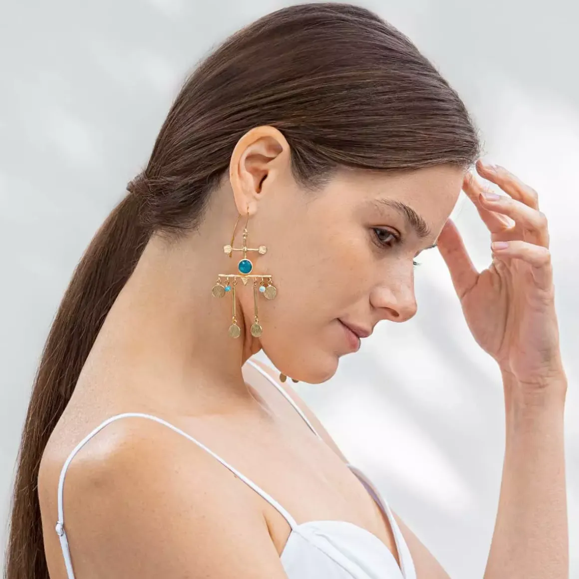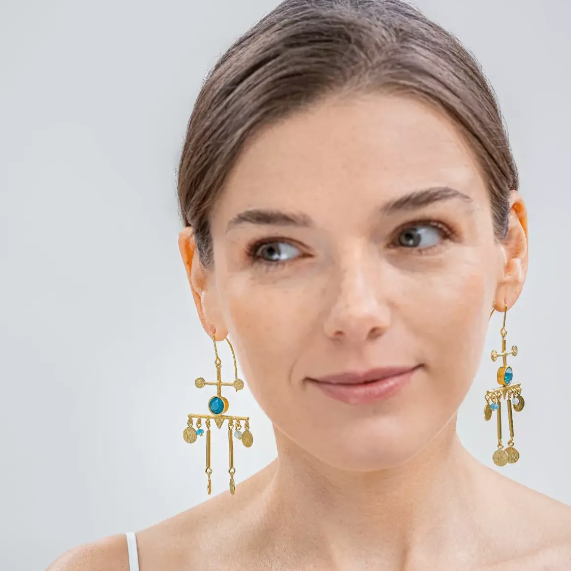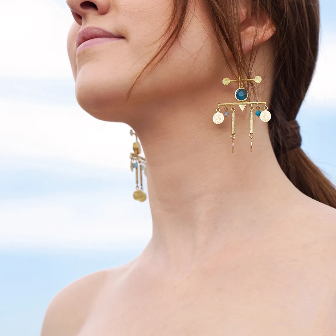 Artystyczna biżuteria z kolekcji Gelato, inspirowana letnim przebudzeniem i wakacyjną radością, pełna jest energetycznych kolorów, które wybrane zostały nieprzypadkowo. Anna Orska sięgnęła do egzotycznych fascynacji ośrodkami energii i zinterpretowała dobre wibracje w biżuterii ze szczyptą boho. Wiszące kolczyki projektu polskiej projektantki, powstały dzięki połączeniu różnokolorowych minerałów, takich jak amazonit, kwarc i apatyt, z geometrycznymi zawieszkami. Oryginalna biżuteria w energetyzującym kolorze wywołując uśmiech na twarzy, przypomina o ważnej roli równowagi w naszym życiu.