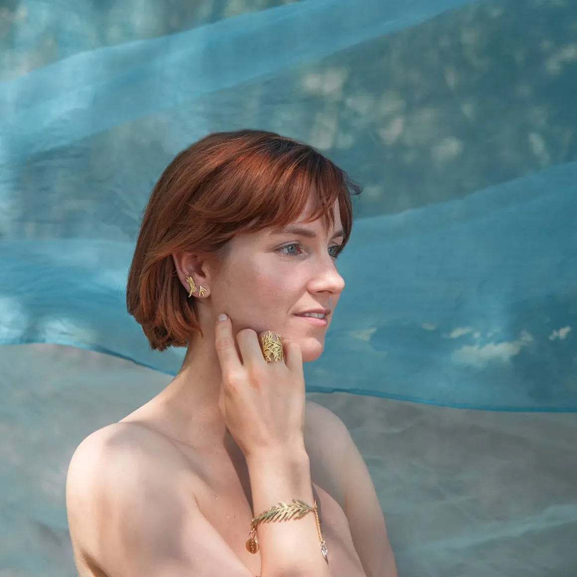 Kruche gałązki zanurzone w blasku słońca, przyjemny leśny zapach i misterna budowa rośliny sprawiły, że thuja stała się inspiracją do powstania biżuterii z kolekcji Thuja. ORSKA, doceniając talent przyrody, uszyła z fragmentów roślin ażurowe, efektowne formy. Pierścionek w złotym kolorze oplata palec, jak po dotknięciu świeżych gałązek rośliny, a naszyjniki, opatrzone drobnymi kryształami, koją zmysły jak rześki, wilgotny poranek i powolnie skraplająca się woda spływająca po połyskujących gałązkach thuji.