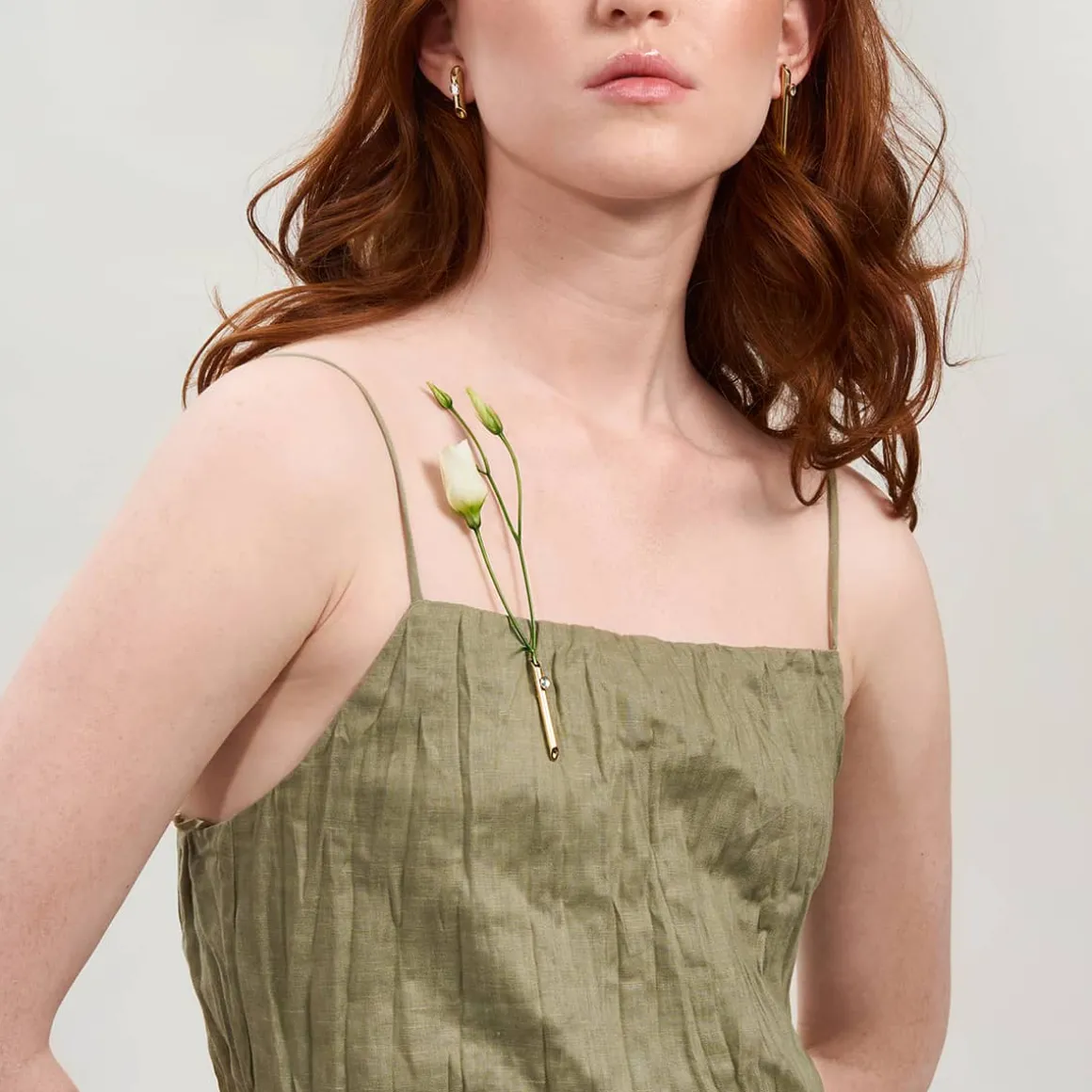 Ozdobiony błyszczącym kryształem pin może pełnić funkcję mosiężnego kwietnika, który dopełni Twoją stylizację. Ręcznie robiona, geometryczna przypinka bez trudu pomieści gałązki i kwiaty, dzięki którym piękno kolorowych kompozycji możesz mieć zawsze przy sobie. Naturalna biżuteria stworzona z wielobarwnych żywych i suszonych kwiatów to dodatek jednoczenie wyjątkowy i uniwersalny – sprawdzi się o każdej porze roku, jako uzupełnienie damskich i męskich kreacji.
