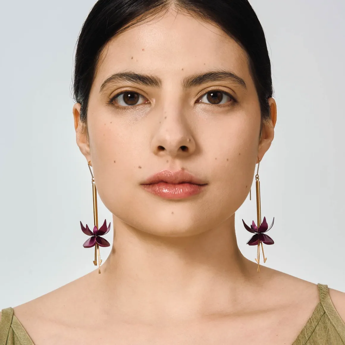 Anna Orska jako entuzjastka przyrody czerpie inspiracje z natury, wiernie odwzorowując jej piękno. Kolekcja Plantis jest hołdem złożonym doskonałości królestwa roślin. Naturalne formy i wzory przełożone na język współczesnego designu stworzyły oryginalną biżuterię przypominającą barwne origami. Artystyczne, wiszące kolczyki zostały wykonane ręcznie z pozłacanego mosiądzu. Egzotyczna biżuteria w formie różnokolorowych kwiatów fuksji oddaje temperament żywiołowych kobiet z wyobraźnią. Efektowne kolczyki przyciągają spojrzenia, sprawiając, że trudno przejść obok nich obojętnie.
