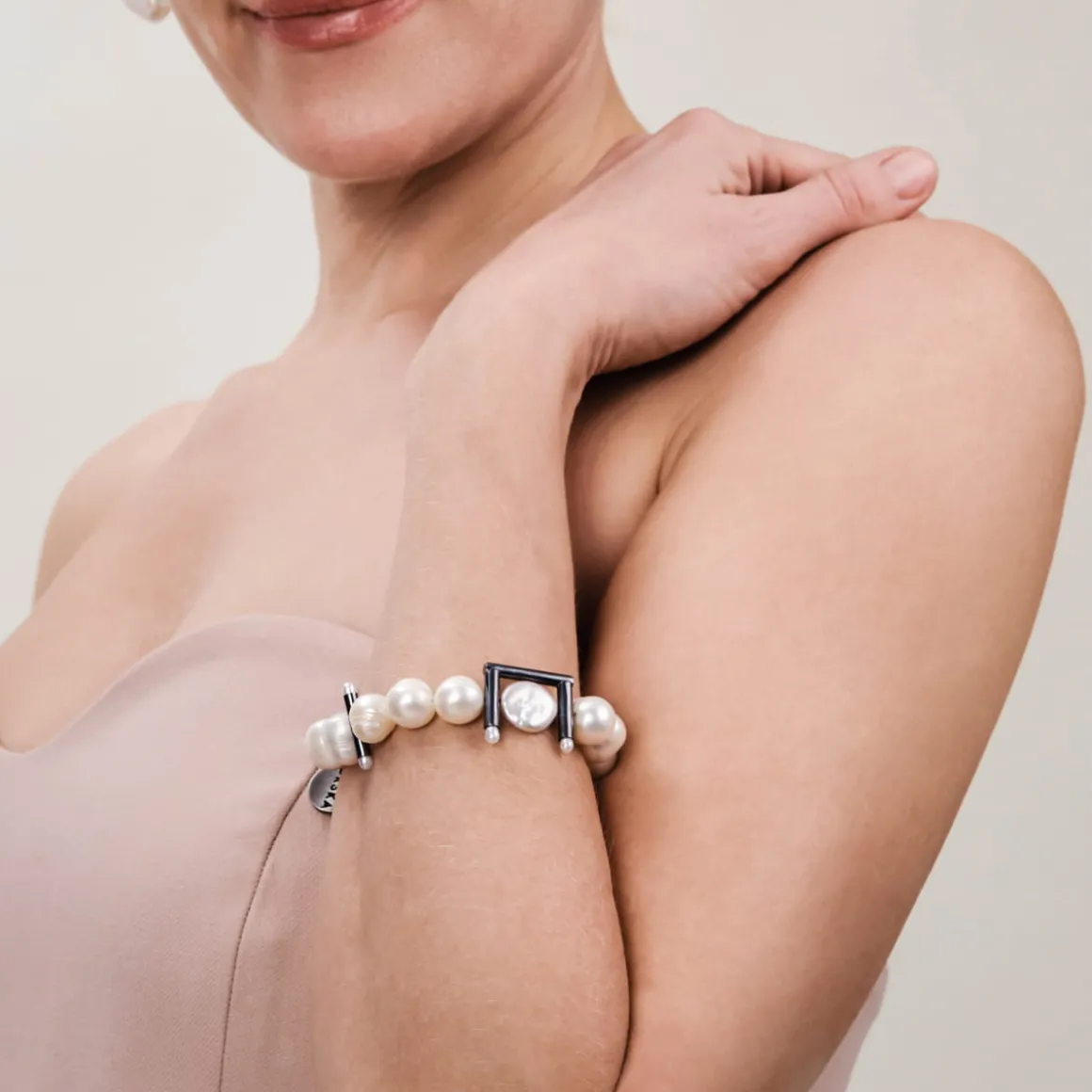 Bransoletka powstała z unikatowych, nieregularnych pereł. Efektowna całość została przełamana różnorodnymi, minimalistycznymi elementami wykonanymi ze srebrnych rurek zamkniętych drobnymi perłami słodkowodnymi. Minimalistyczne wzornictwo biżuterii zderzone z efektowną, kremową doskonałością pereł przedstawia współczesną interpretację Wietnamu według projektantki. Bransoletka jest bardzo wyrazista i kobieca zarazem. Świetnie sprawdzi się jako uzupełnienie wieczorowego stroju lub nietuzinkowy akcent casualowej stylizacji.