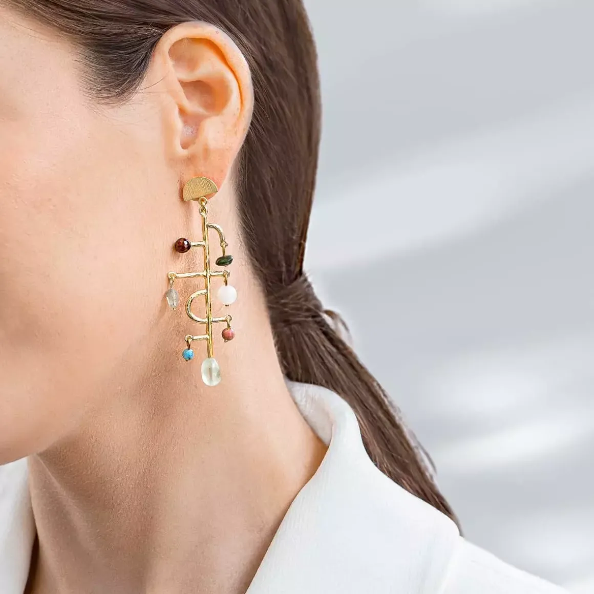 W kolczykach zostały wykorzystane naturalne kamienie i każdy z nich jest wyjątkowy – naturalne różnice w strukturze i barwie kamieni czynią każdą sztukę unikatowym dziełem natury, podkreślając indywidualizm i niepowtarzalny charakter tej biżuterii.