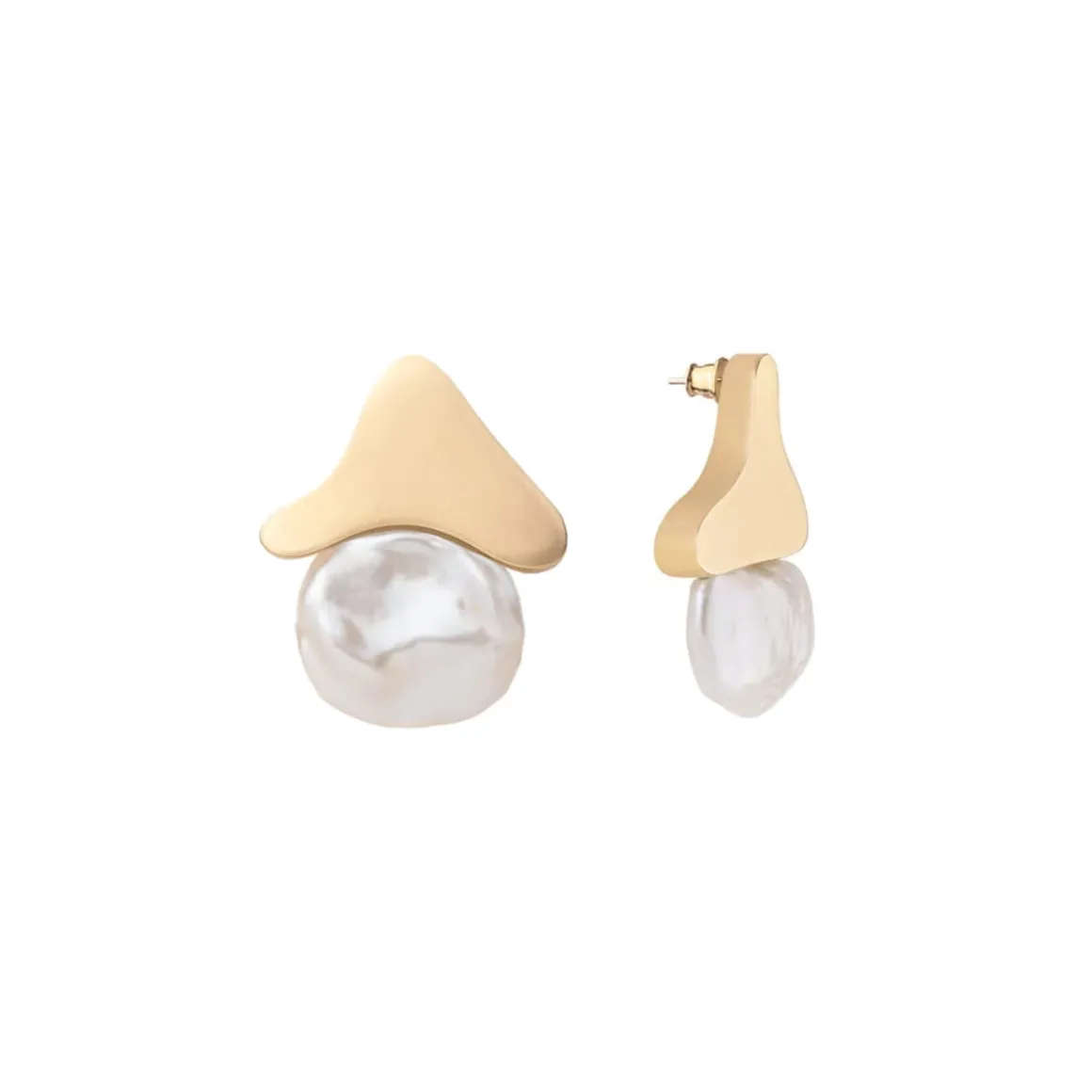 Asymetryczne kolczyki zostały wykonane ręcznie. Miękkie, nieregularne kształty odlane w pozłacanym mosiądzu ozdobione zostały okazałymi perłami słodkowodnymi. Całość utworzyła elegancką kompozycję, przypominającą zdobne ornamenty art nouveau. Kolczyki, mimo dekoracyjnej formy, mają elegancki charakter. Pięknie prezentują się solo, ale lubią być w komplecie! Docenią towarzystwo naszyjnika z dużymi perłami i czarno-białej bransoletki z onyksem.