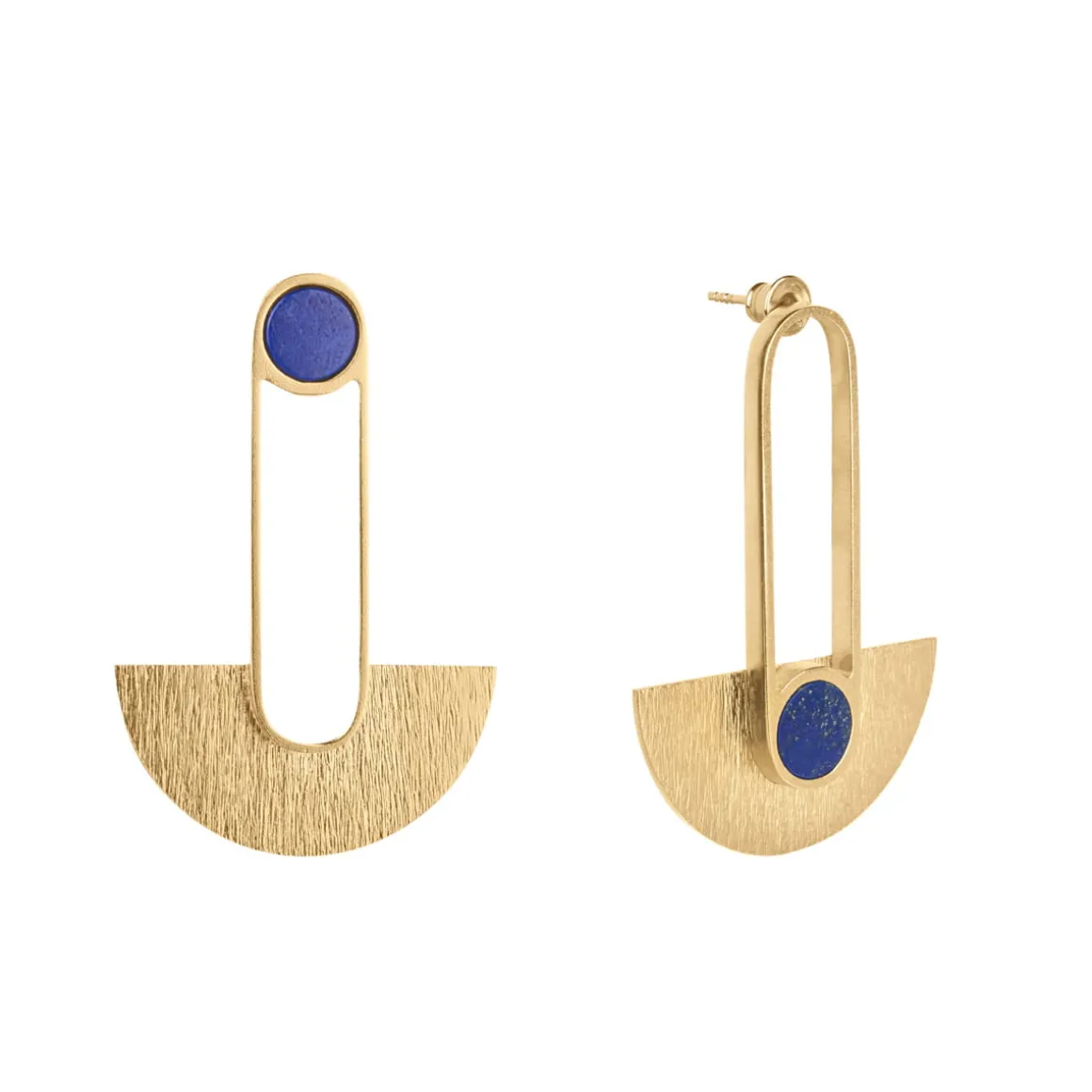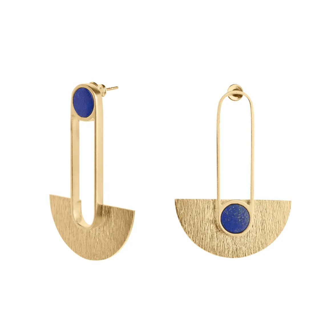 Asymetryczne, pozłacane kolczyki z lapis lazuli z kolekcji Orini