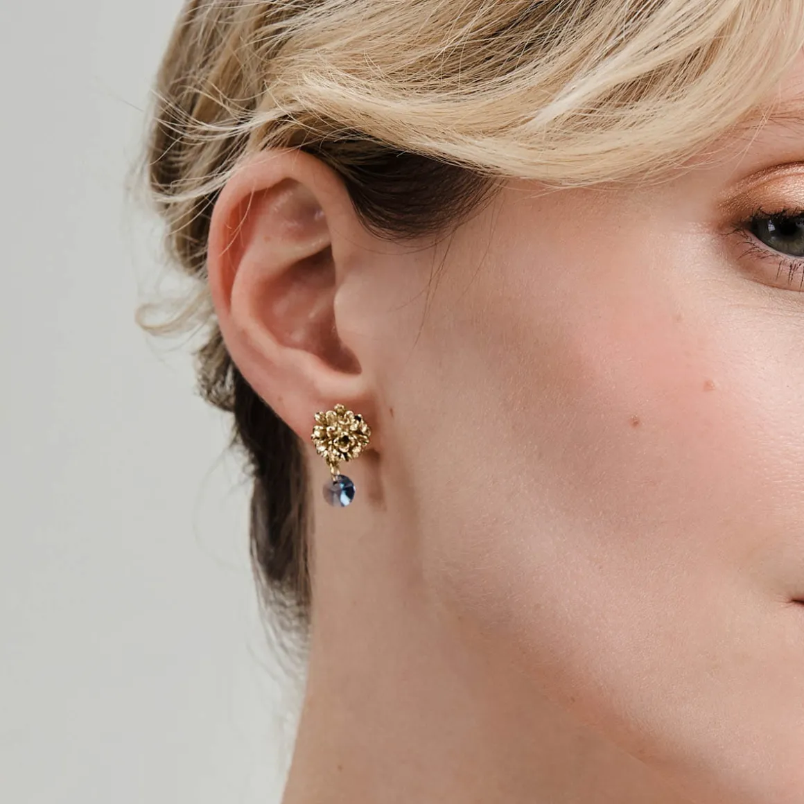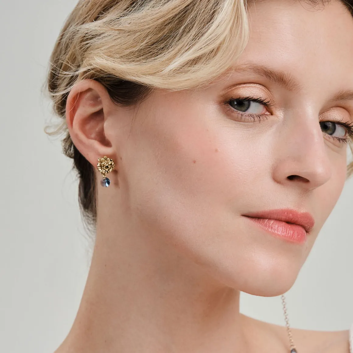 ORSKA jako niepoprawna entuzjastka zielonych krajobrazów i otwartych przestrzeni stworzyła kolekcję Bery, która hołduje doskonałości naturalnych form. Szanując wdzięk roślin w swoich projektach starała się jak najmniej ingerować w ich faktyczny kształt. Asymetryczne, wiszące kolczyki w kształcie kwiatów zostały ręcznie wykonane z pozłacanego mosiądzu i ozdobione niebieskimi kryształami Swarovski Elements. Delikatna i kobieca biżuteria w romantycznym stylu będzie idealnym wyborem dla osób kochających naturę, które nieustannie czerpią z niej siłę i inspirację.