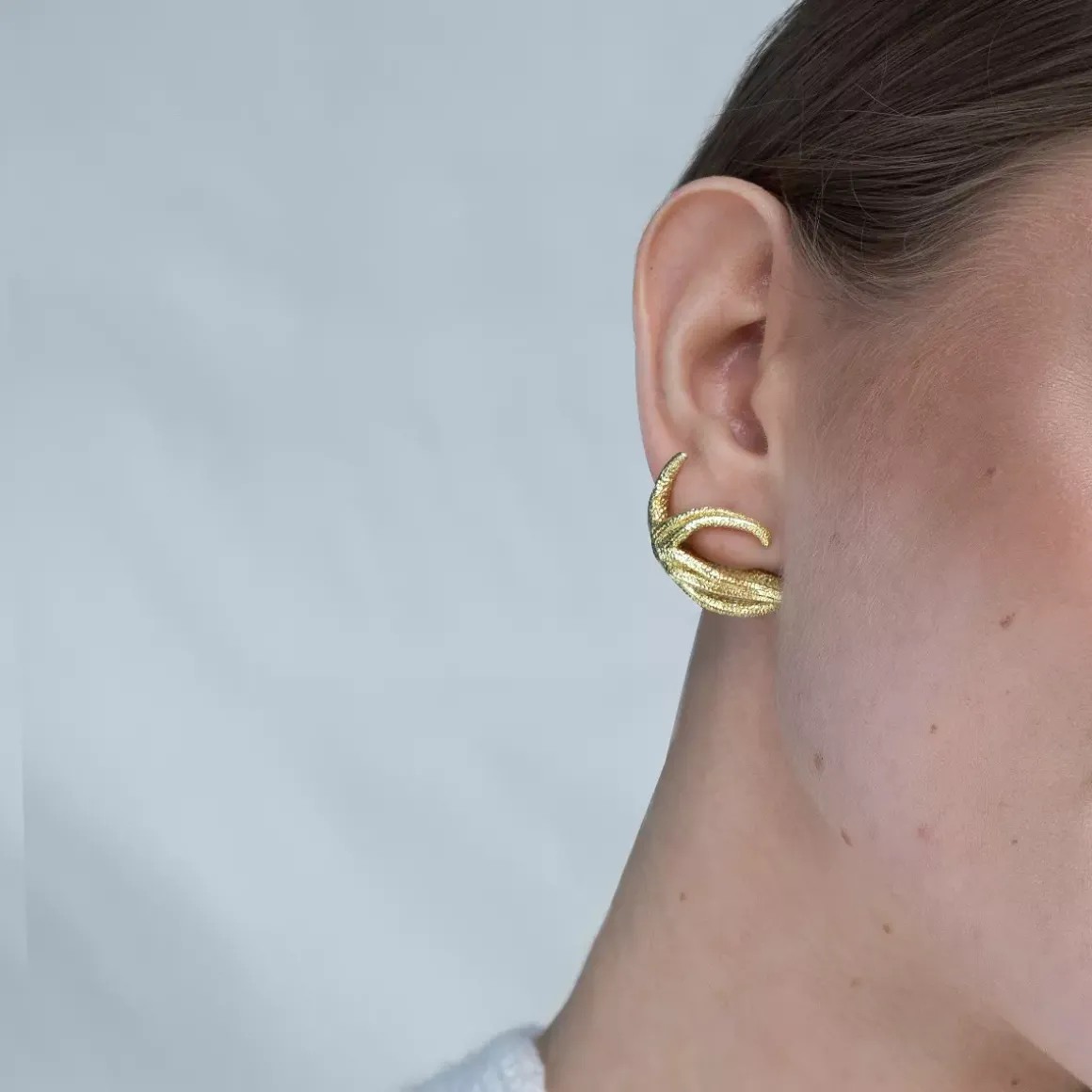 Kolekcja Maris to skok w oceaniczny świat, wiernie przeniesiony do naszej rzeczywistości. Anna Orska skomplikowane kształty muszli odtworzyła w metalu, eksponując ich drobne niedoskonałości. Realistyczne projekty i sposób ich wykonania to pochwała autentyczności, przypomnienie, że natury nie warto poprawiać, ponieważ ona zawsze dostarcza ponadczasowe wzorce piękna. Asymetryczne kolczyki na sztyft w kształcie rozgwiazd przywołują wspomnienia lata. Ręcznie wykonana biżuteria z pozłacanego mosiądzu doda lekkości i kobiecości sukienkom i wzorzystym stylizacjom.