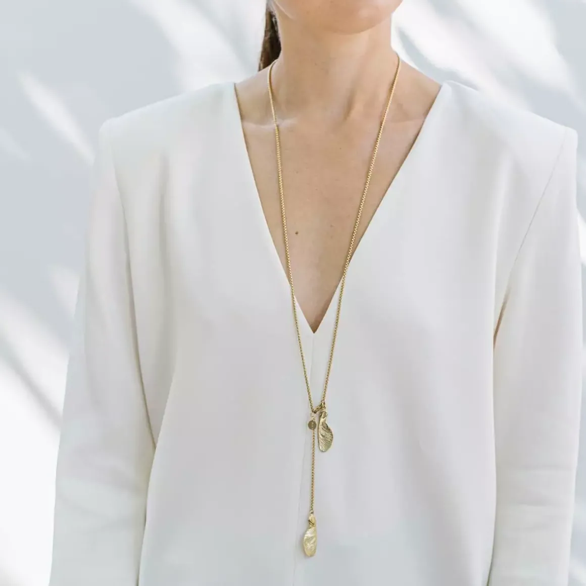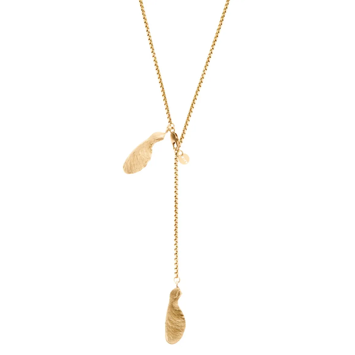 ORSKA jako entuzjastka przyrody stworzyła kolekcję Bery, która hołduje doskonałości naturalnych form. Projektantka czerpie inspiracje z natury wiernie odwzorowując piękno fauny i flory. Oryginalny, asymetryczny naszyjnik został zrobiony ręcznie z pozłacanego mosiądzu. Do delikatnego, długiego łańcuszka podwieszono zawieszkę w kształcie pojedynczego noska klonowego rzeczywistych rozmiarów. Drugi nosek przymocowano z przodu, tuż przy zapięciu. Organiczny design przez wielu kojarzony z dzieciństwem i beztroską sprawia, że biżuteria będzie idealnym wyborem dla osób kochających naturę.