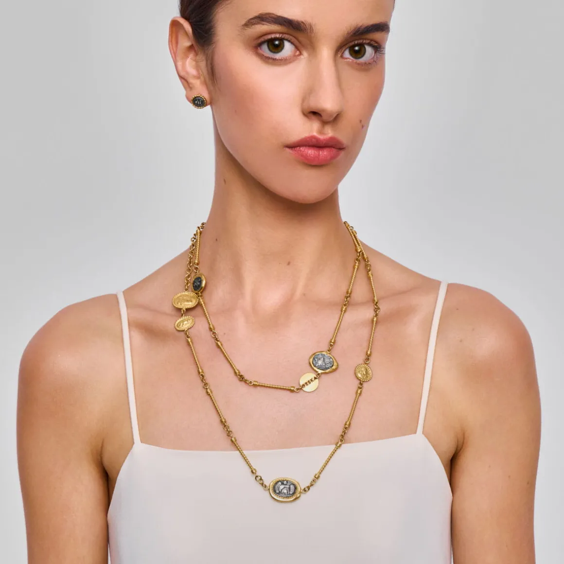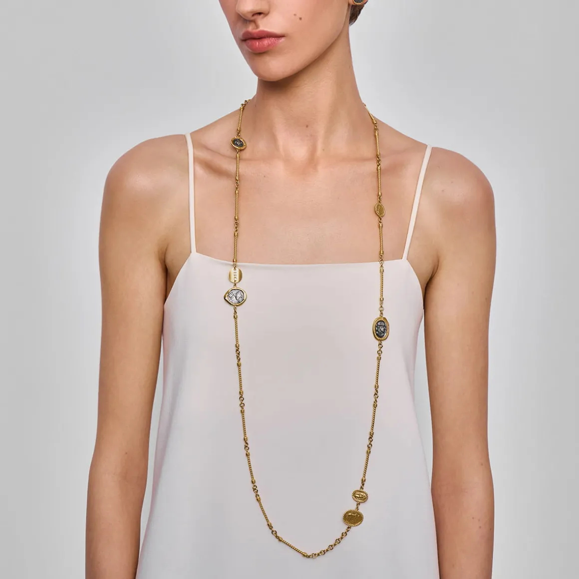 W kolekcji Semios odnajdujemy motywy, które – mimo że pochodzą z różnych tradycji – wciąż pozostają aktualne. W długim naszyjniku symbole te utworzyły autorską konstelację dobrych znaków. Sprawdź, jakie przesłanie skrywają!